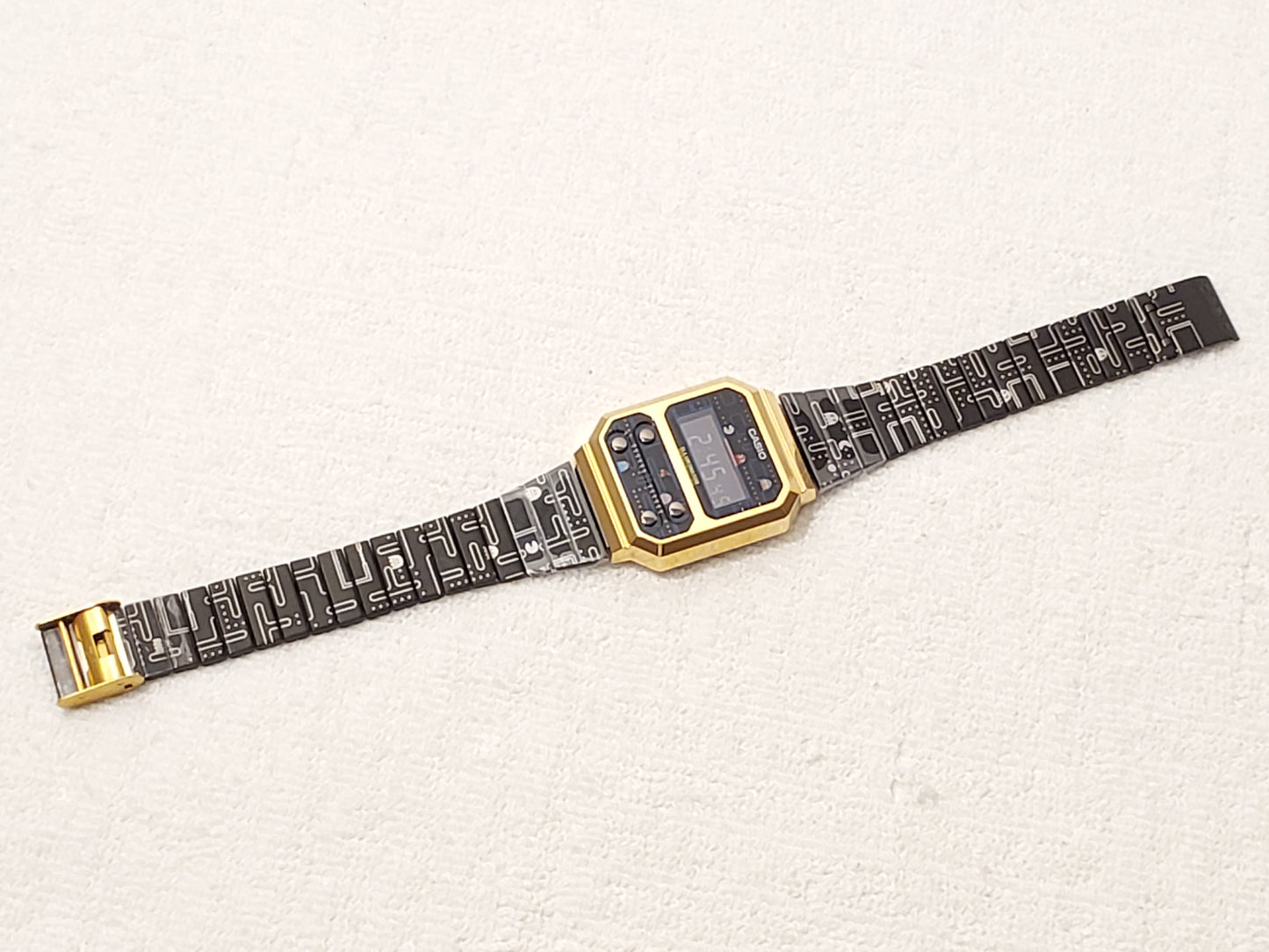 EXCELLENT TO LIKE NEW CONDITION. Original battery, JANUARY 2025, tested, inspected, and witnessed, everything works, fully functional as manufactured, smoke and pet free, ready to wear. Wrist fit up to 8 1/2" can adjust to fit a smaller size. Photos may be brighter than the original color. Case size 34m, thickness 9m, gold tone, black, multicolor, resin case, instructions, box, display case, digital, China, stainless steel, water resistance 30 meters, timer, shock resistant, annual calendar, limited edition, backlight, alarm, LCD display, chronograph, date day month indicator, multifunction, splash proof, adjustable slider clasp.