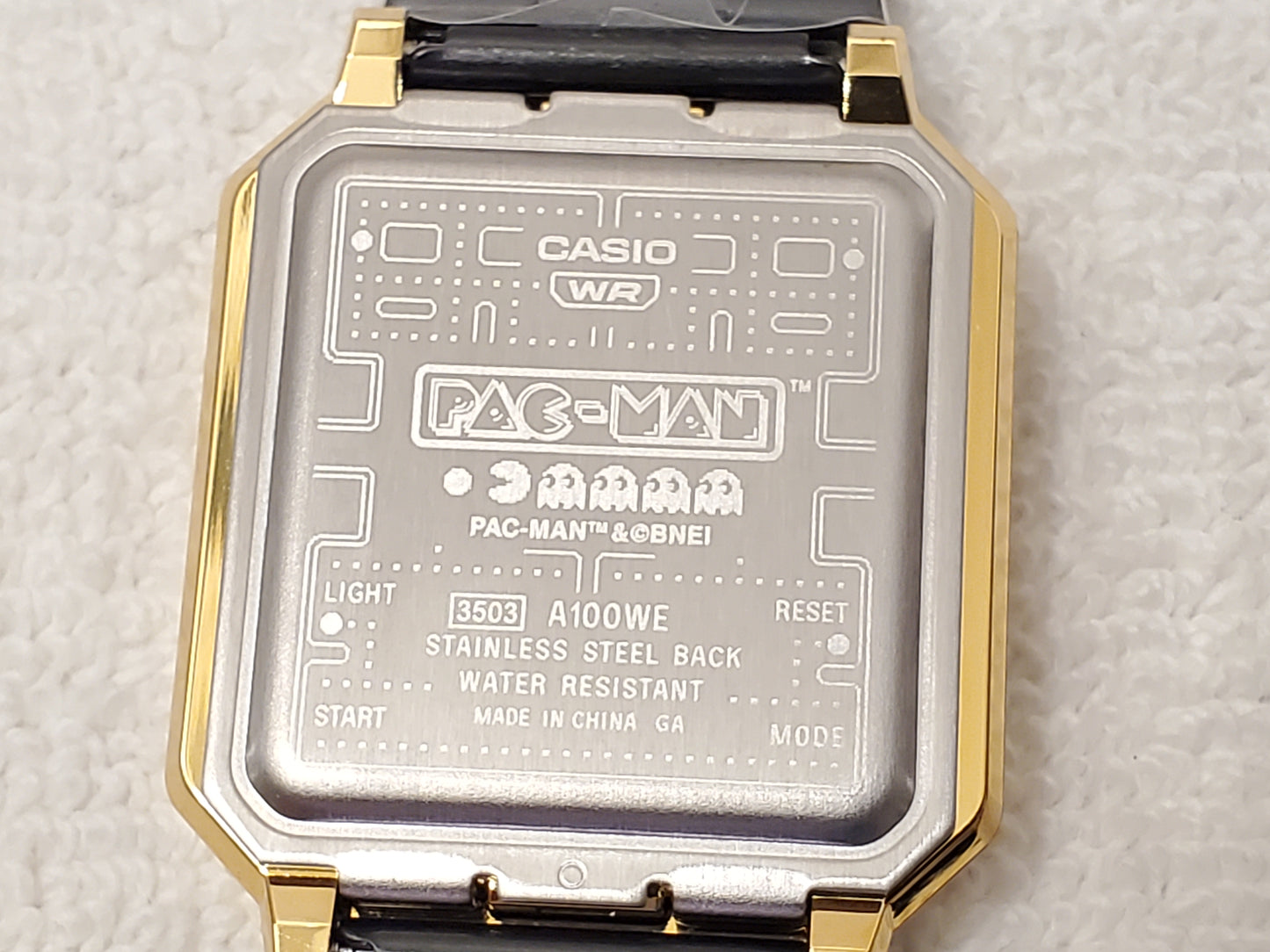 Casio Pac-Man Black Gold Multicolor Men's Digital Watch Day Date Alarm S Steel