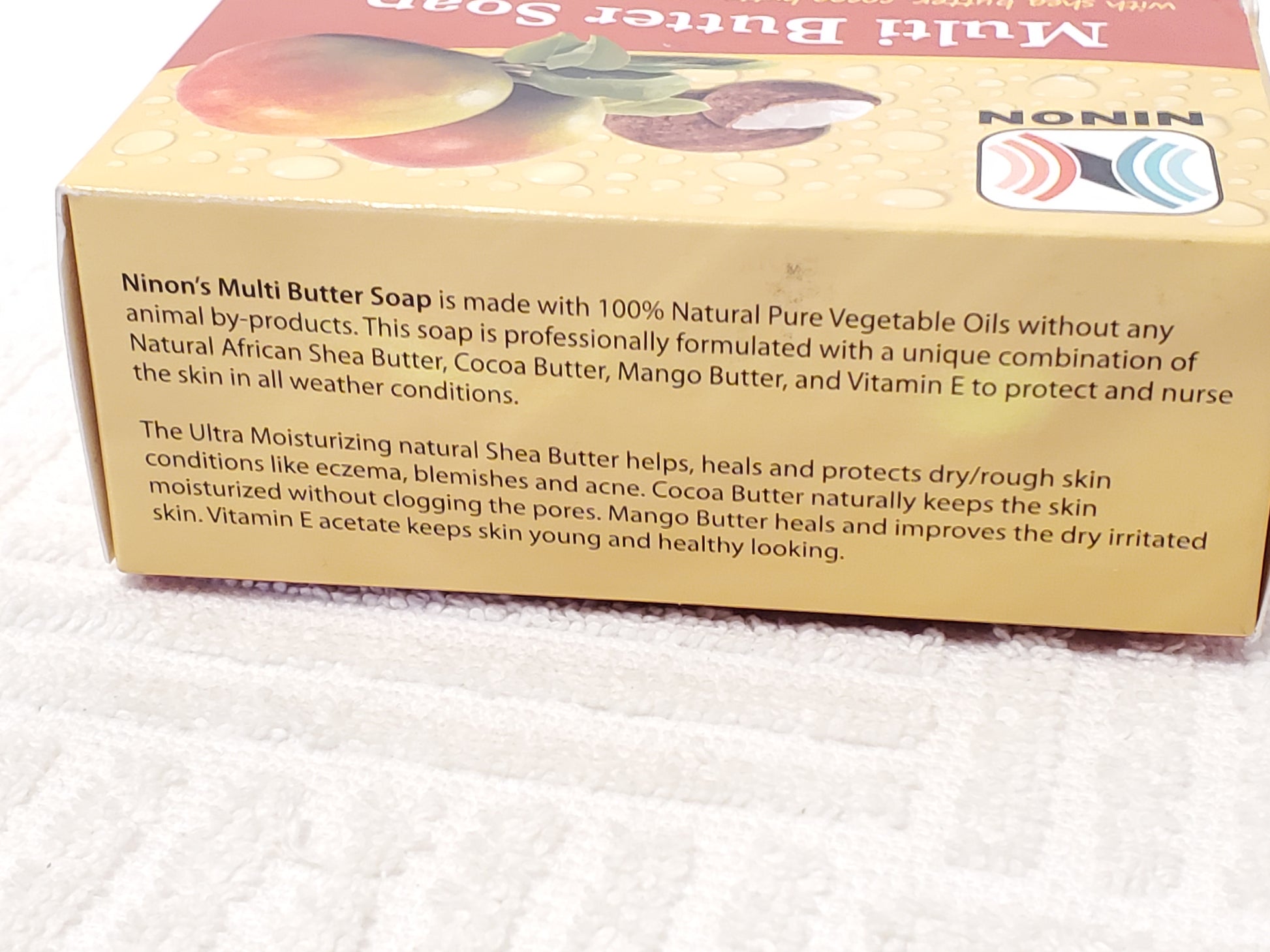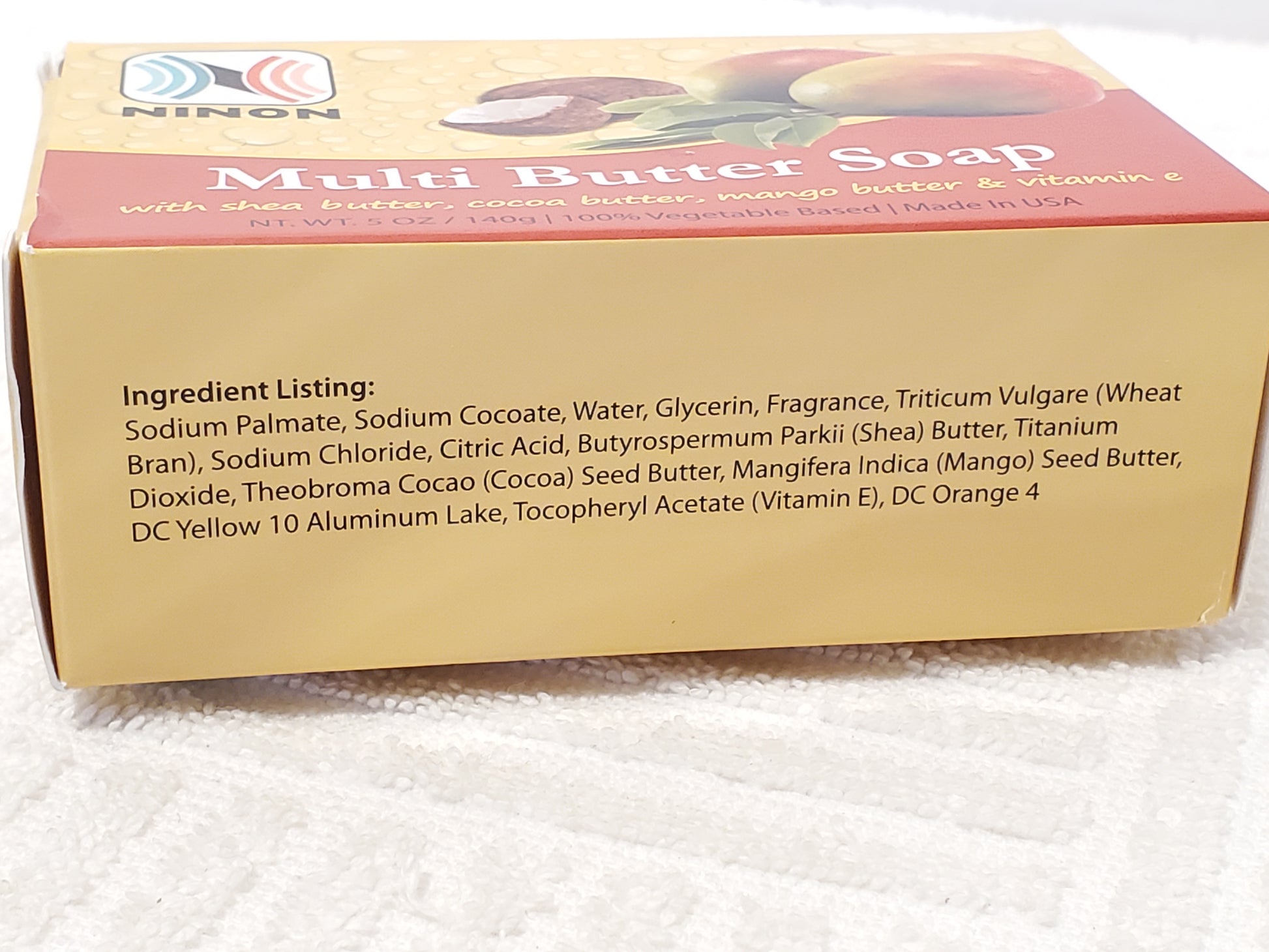 Multi Butter Bar Soap by Ninon 5 Ounce Shea Cocoa Mango Vitamin E 100% Vegetable Oil