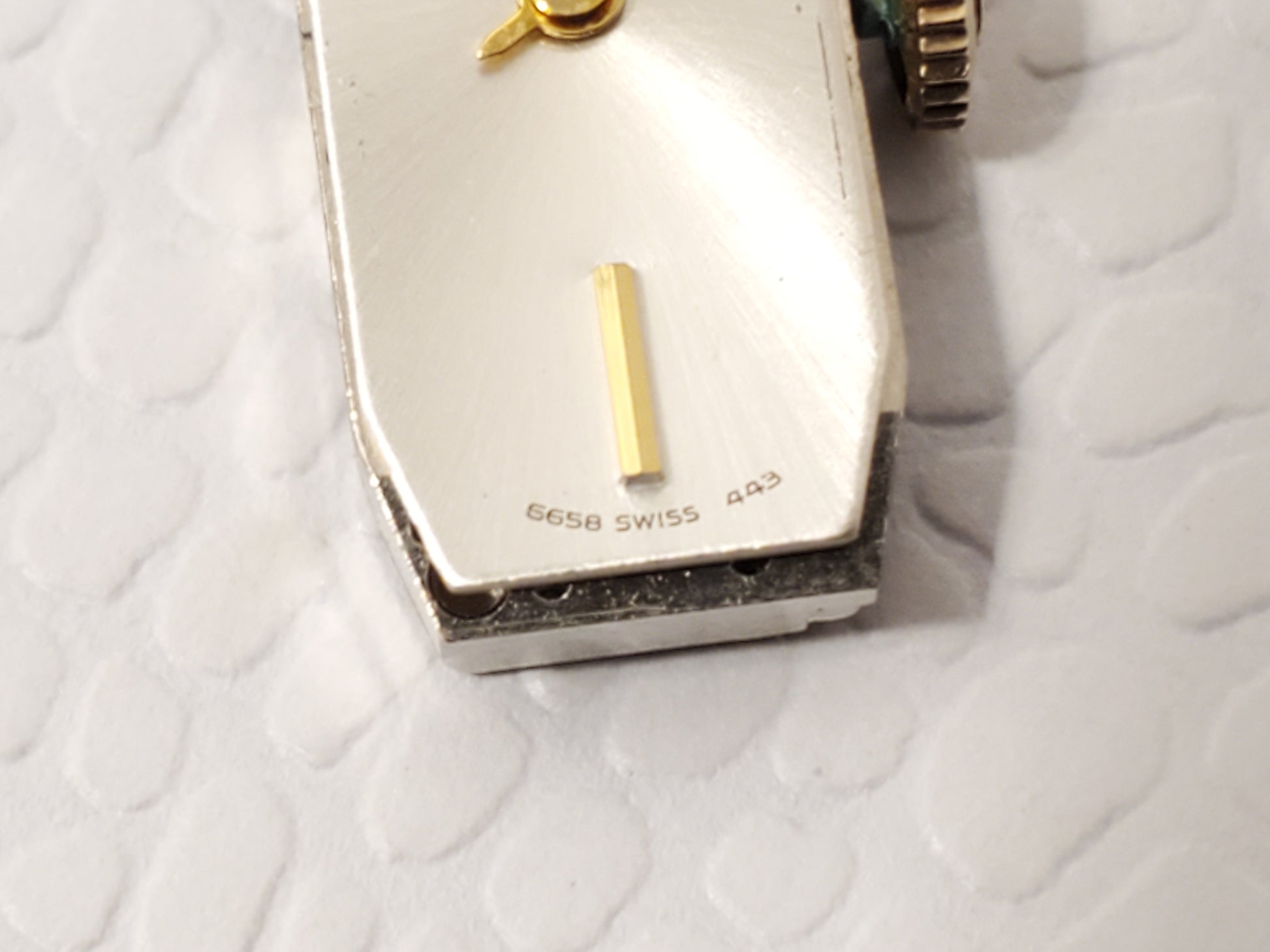 A few minor tiny to small ghost to light scratches on thick mineral crystal glass window nothing major. NO DIAMONDS ARE MISSING. ONE OWNER. GENTLY USED. VERY GOOD CONDITION COSMETICALLY. May see ghost to lite scratches on back plate all minor. FULLY WIND UP SEPTEMBER 2025, tested, inspected, and witnessed, everything works, fully functional as manufactured, smoke and pet free, CLEAN, DETAILED, POLISHED, BRIGHT, SHINY, PETITE, ready to wear. Wrist fit up to 6 1/2" max tight fit can adjust to fit a smaller size. Photos may be brighter than the original color. Age of watch is estimated to be 50 plus years old. Case size 11m, thickness 10m, silver dial, tank style shape case, vintage 1960's or 70's, stainless steel, gold plated, diamonds bezel, mesh band, adjustable slider clasp, 17 jewels, Swiss Made, Swiss Movement, Switzerland, rare, lovely gift, luxurious. This watch should be purchased by an individual that is fully familiar with this type of windup watch.