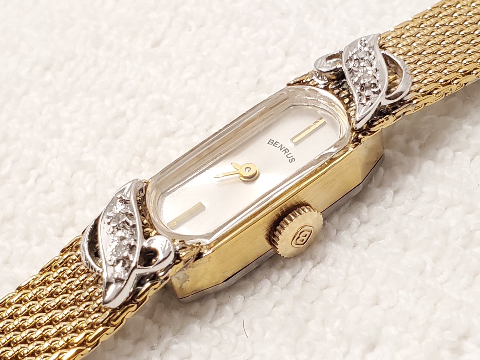 Vintage Benrus Swiss Gold Plated Diamonds Bezel Women's Wind Up Watch 17 Jewels