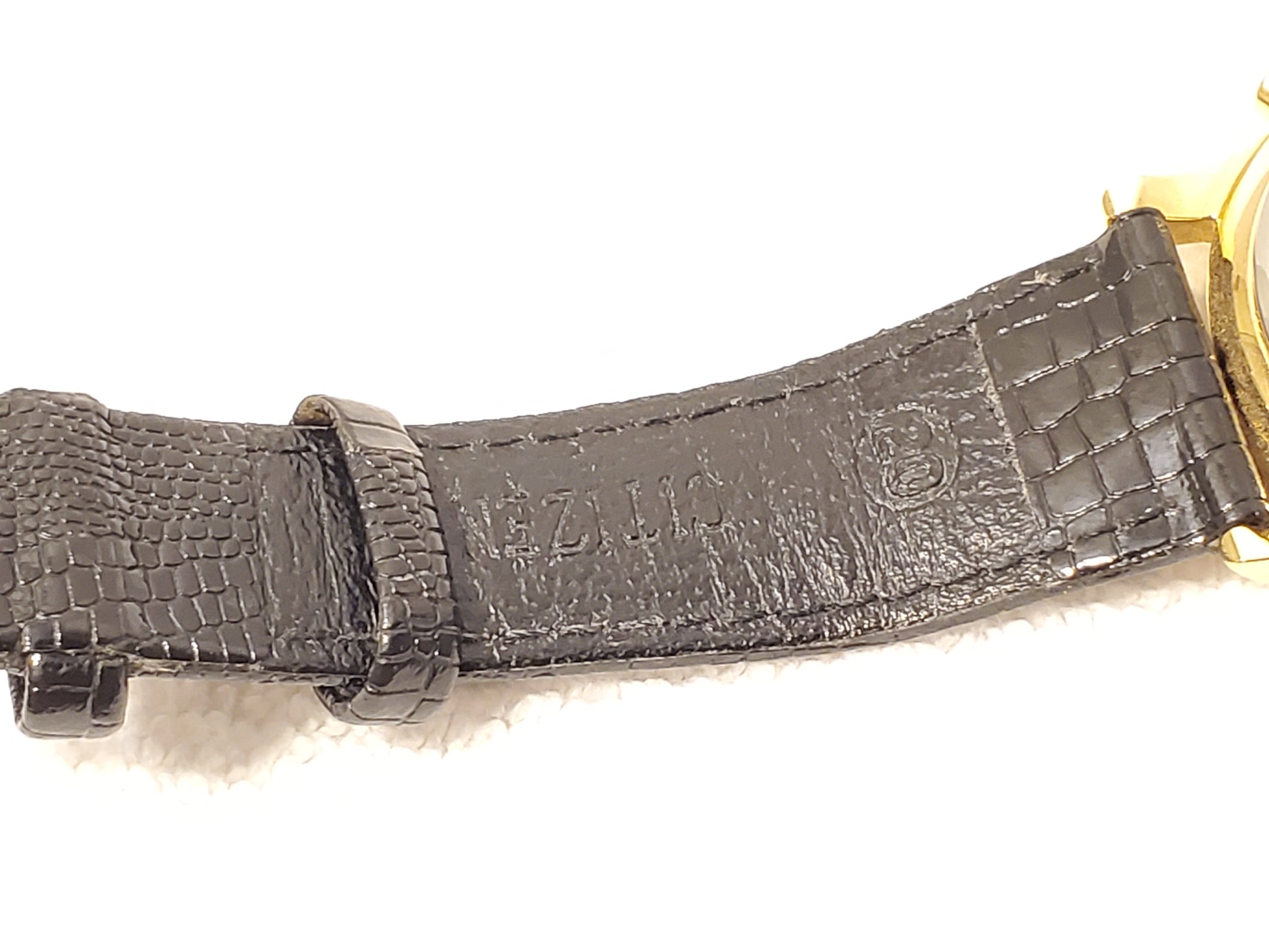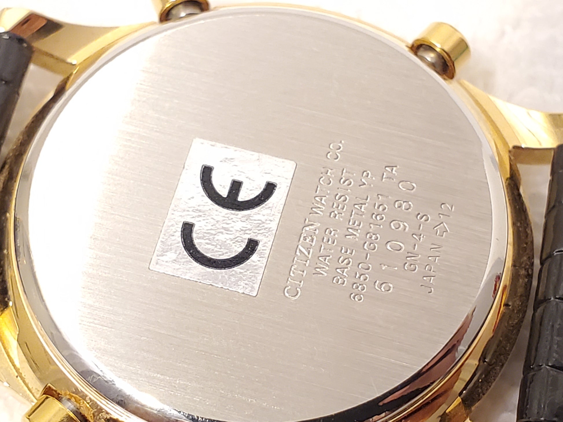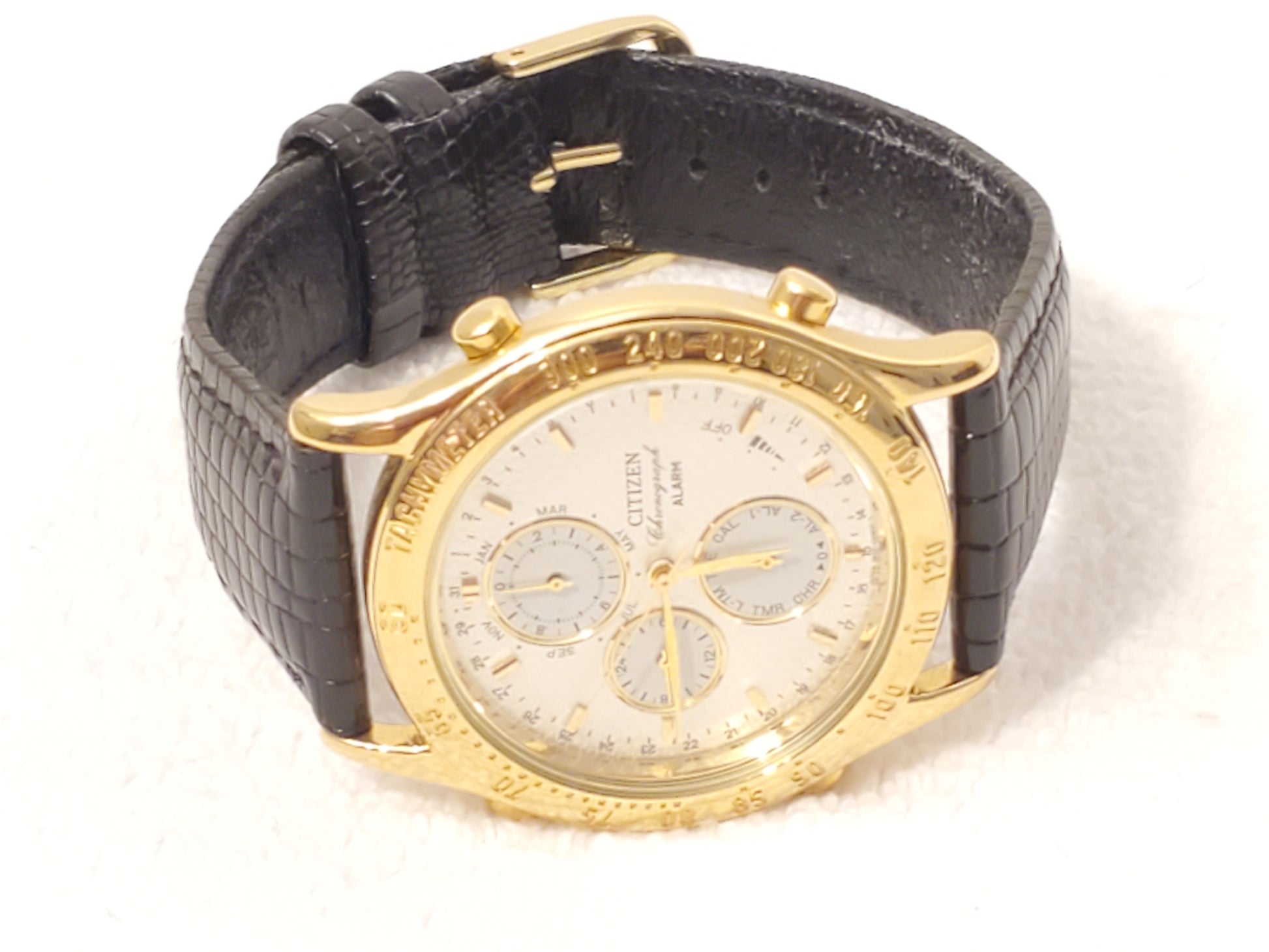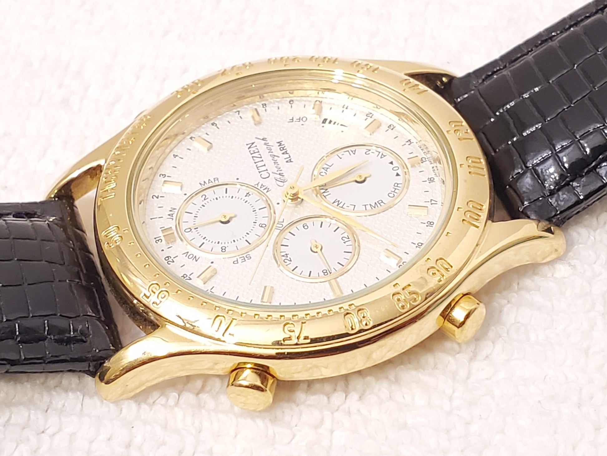 Vintage Citizen Chronograph Alarm Date Month Timer Men Gold Plated Watch Leather