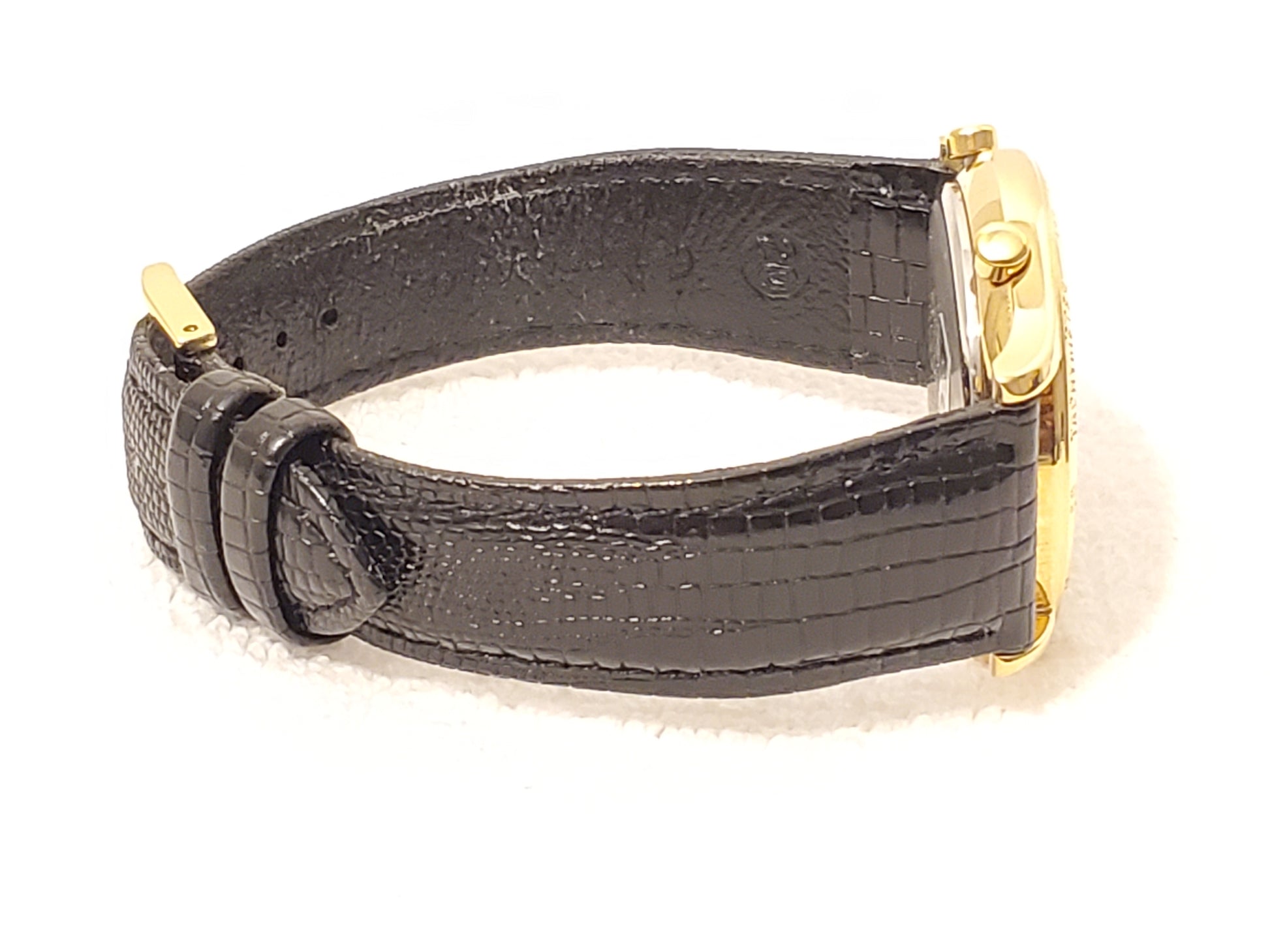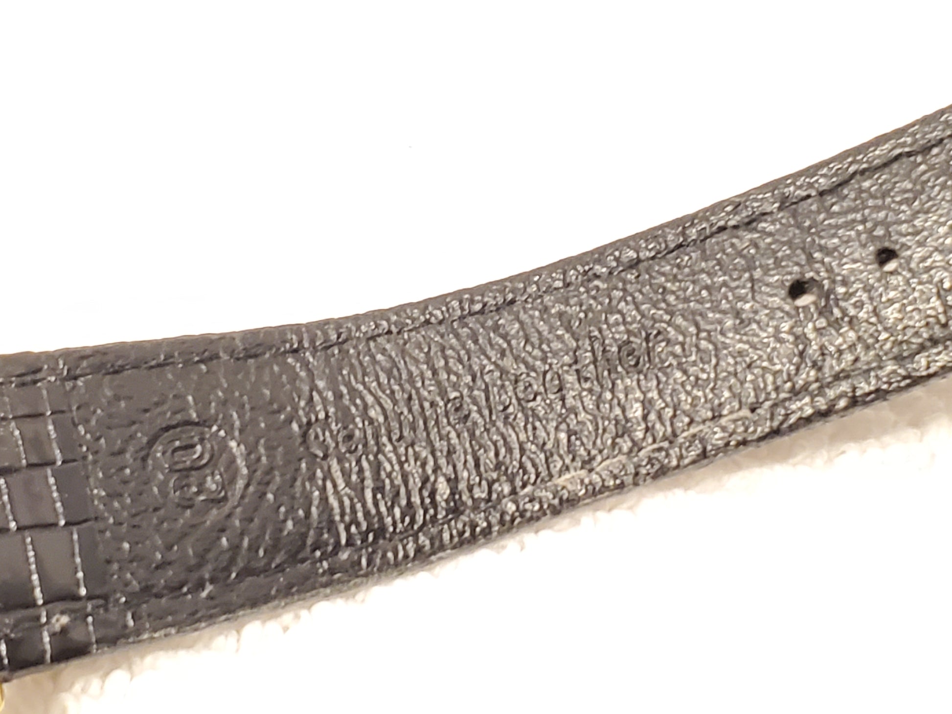 NO SCRATCHES OR SCUFFS ON MINERAL CRYSTAL GLASS WINDOW. ONE OWNER. GENTLY/BARELY USED. VERY GOOD CLOSE TO EXCELLENT CONDITION COSMETICALLY. New ENERGIZER battery installed SEPTEMBER 2025, tested, inspected, and witnessed, everything works, fully functional as manufactured, smoke and pet free, CLEAN, DETAILED, POLISHED, BRIGHT, SHINY, ready to wear. Wrist fit up to 7 1/2" max tight fit can adjust to fit a smaller size. Photos may be brighter than the original color. Case size 37m, thickness 8m, silver dial, chronograph, month and date indicator, vintage 1980's, fixed tachymeter, timer, splash proof, water resistance 30 meters, gold plated, stainless steel, black leather strap, alarm 1 and 2, 12/24 hour.