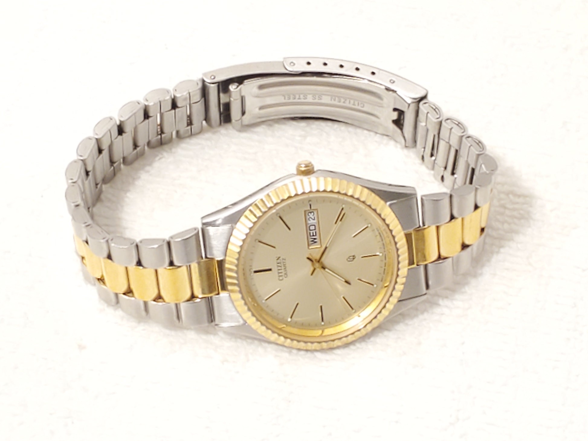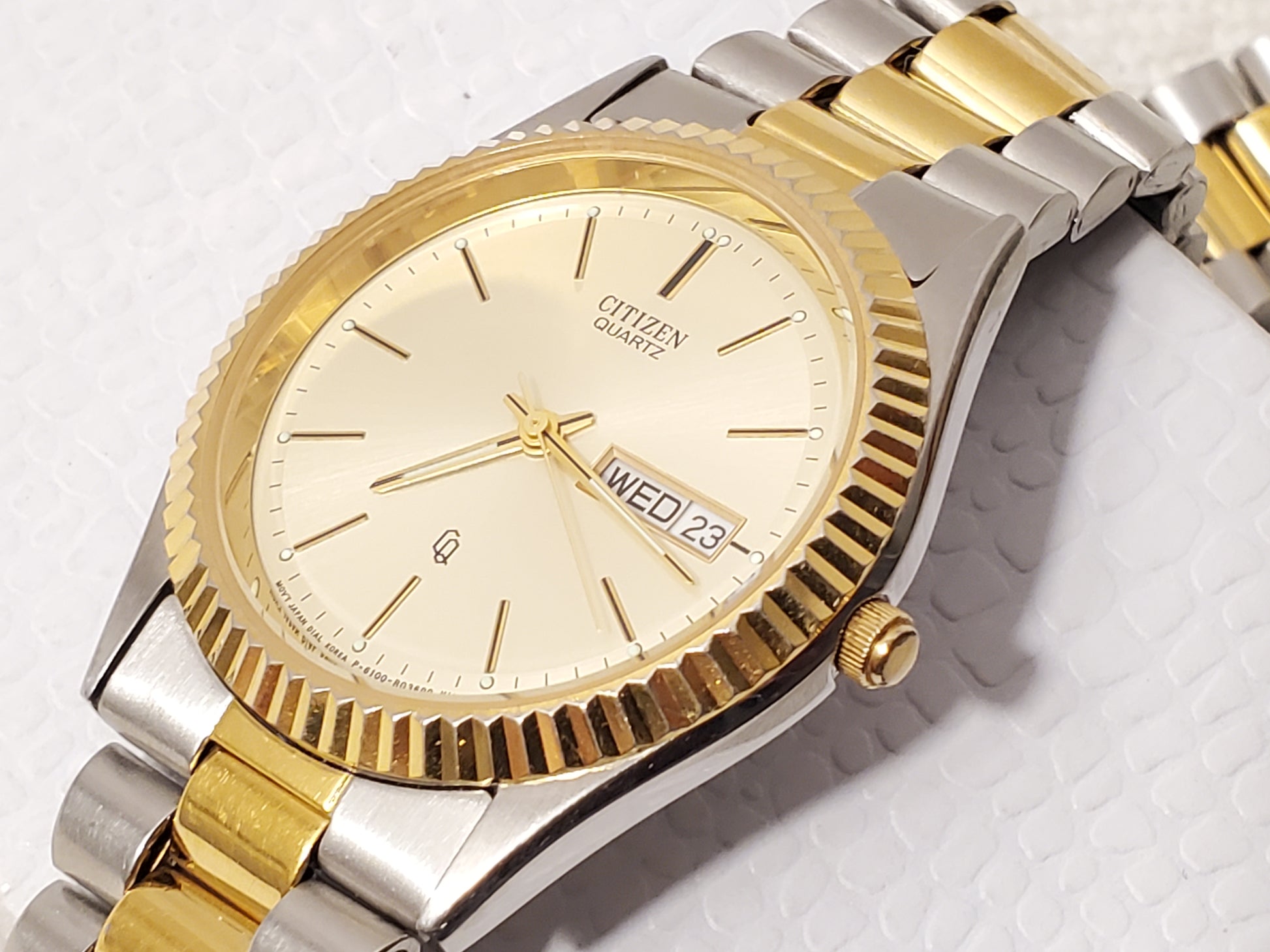 Vintage Citizen CQ Men's Day Date Presidential Watch Gold Tone Stainless Steel