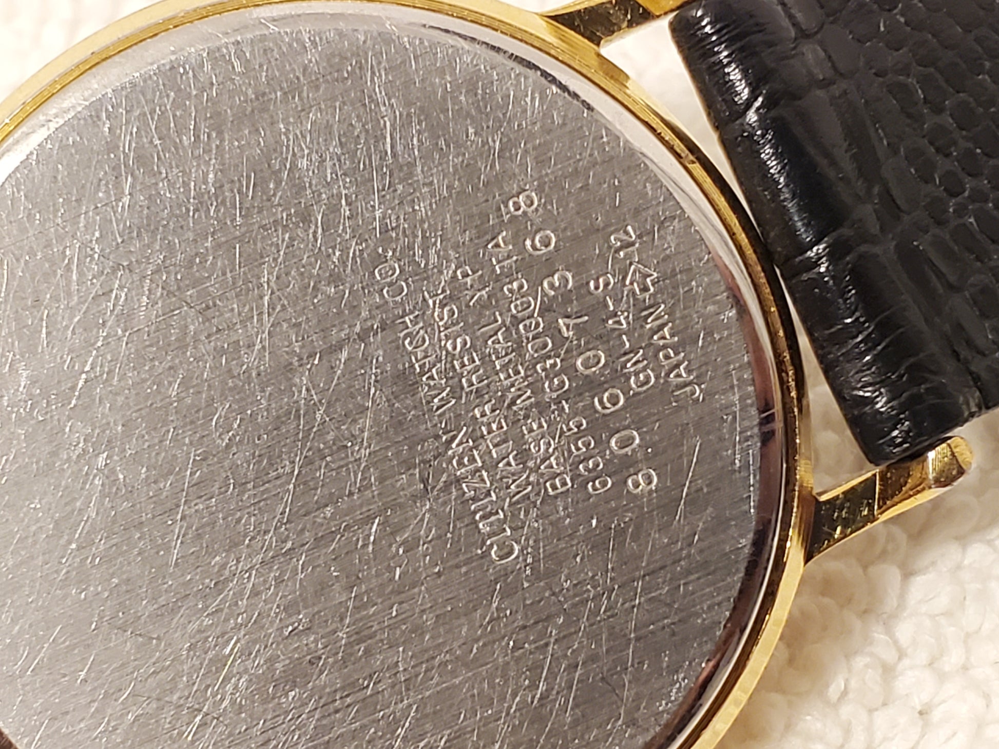 NO SCRATCHES OR SCUFFS ON MINERAL CRYSTAL GLASS WINDOW. May see ghost to lite scratches on back plate all minor/NORMAL WEAR FOR AGE. Very minimum lite fading on edges of case barely can see. New ENERGIZER battery installed AUGUST 2025, tested, inspected, and witnessed, everything works, fully functional as manufactured, smoke and pet free, CLEAN, DETAILED, POLISHED, BRIGHT, SHINY, ready to wear. Wrist fit up to 7 1/2" max tight fit can adjust to fit a smaller size. Photos may be brighter than the original color. Case size 34m, thickness 8m, day date month indicator, champagne dial, gold tone, stainless steel, vintage 1980's, black leather strap, gold plated movement, stainless steel, water resistance 30 meters.