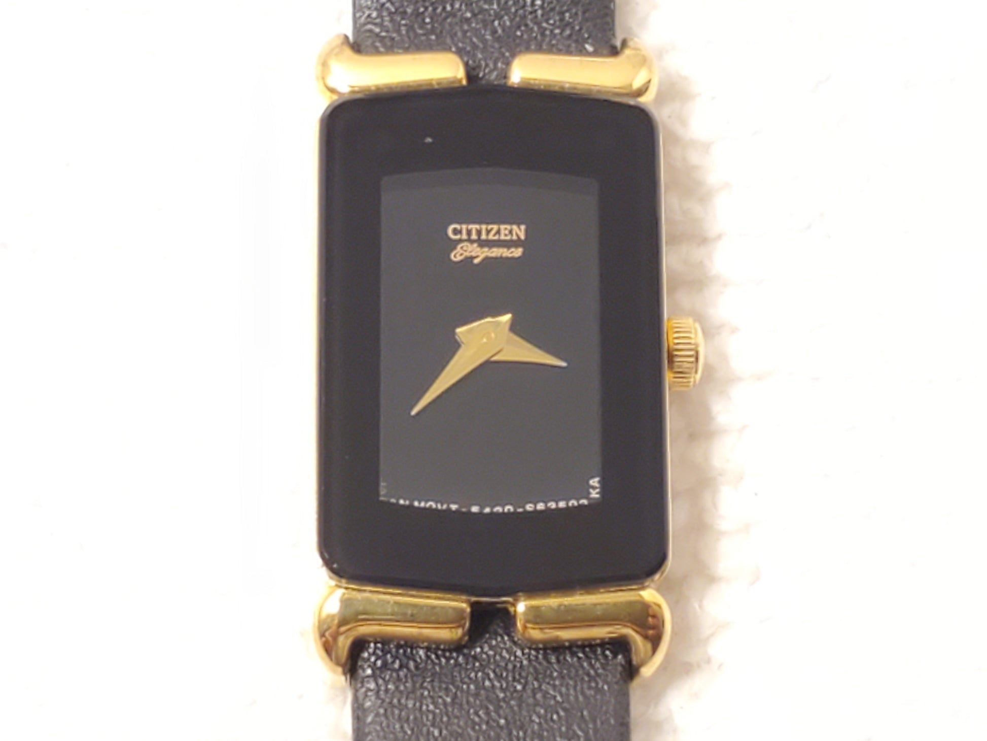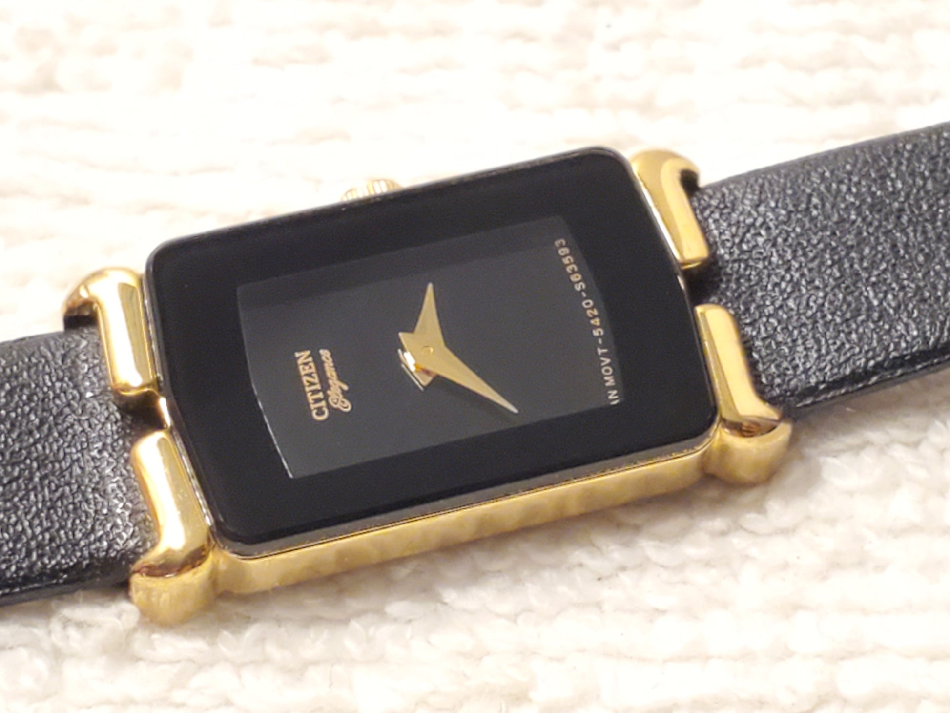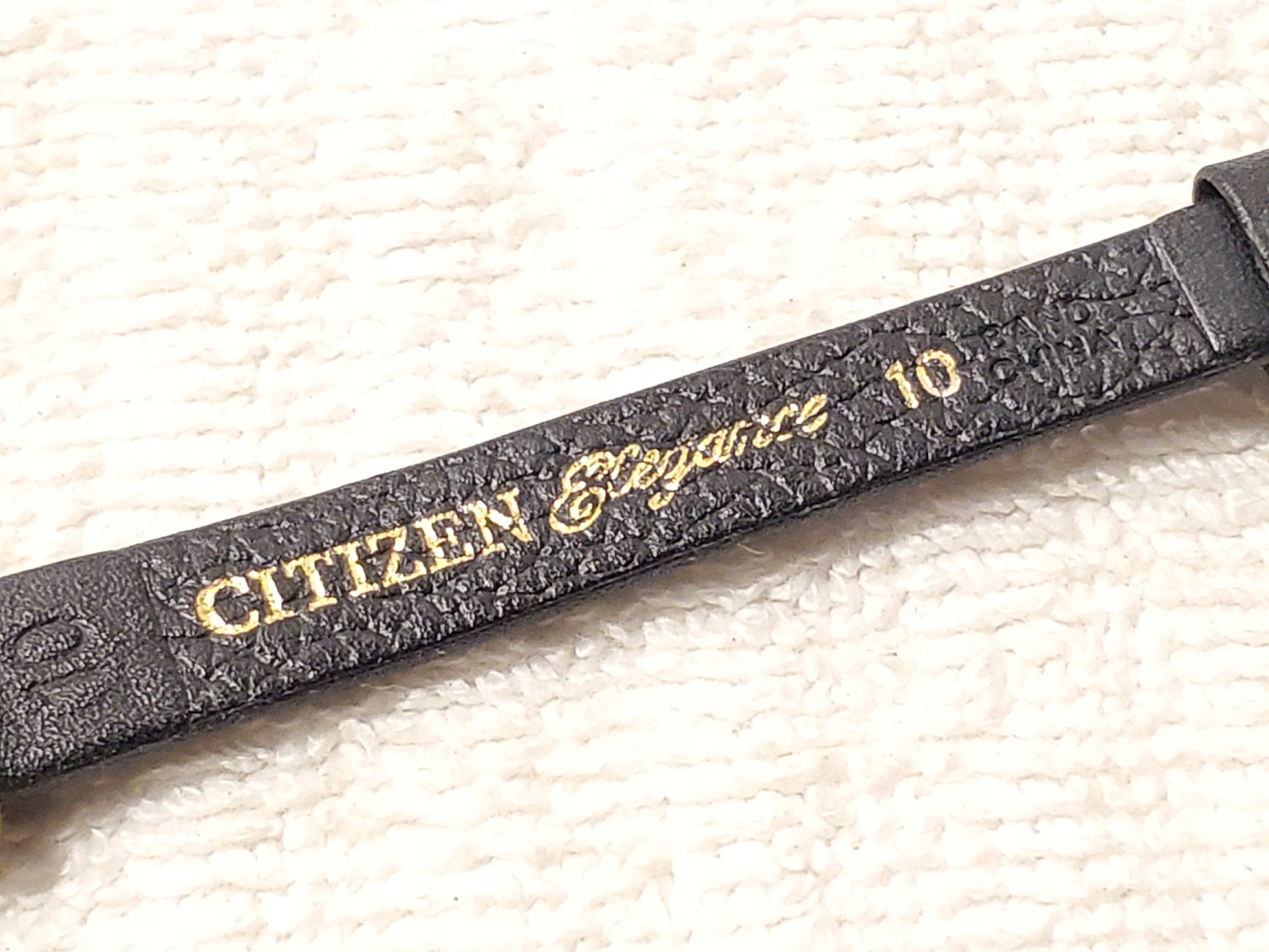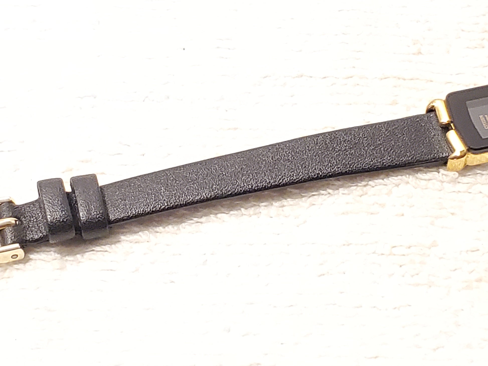 Vintage Citizen Women's Quartz Watch Gold Plated Black Dial Leather Strap Petite