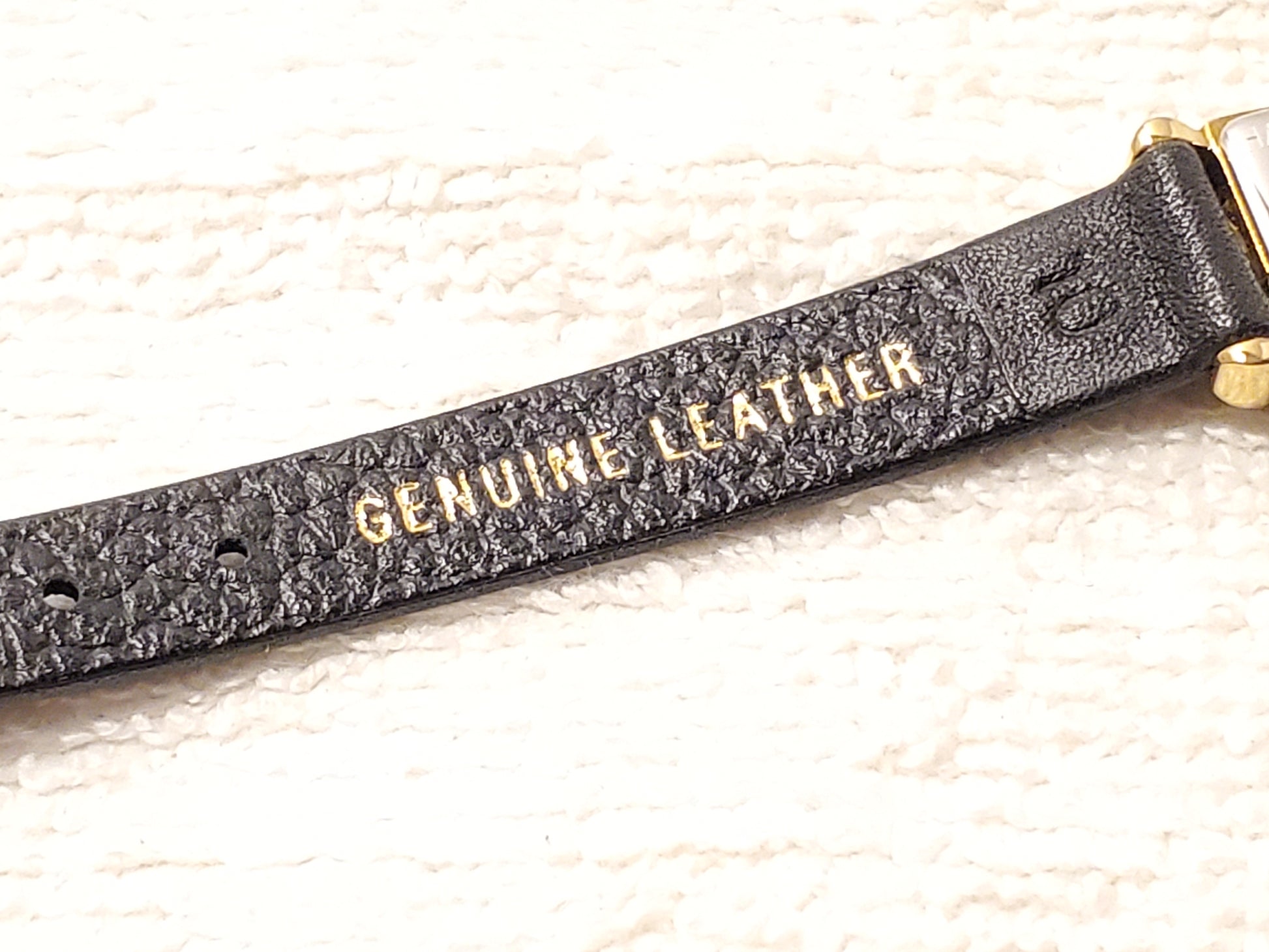 NO SCRATCHES OR SCUFFS ON MINERAL CRYSTAL GLASS WINDOW. ONE OWNER. GENTLY USED. VERY GOOD CONDITION COSMETICALLY. May see ghost to lite scratches on back plate all minor. New ENERGIZER battery installed AUGUST 2025, tested, inspected, and witnessed, everything works, fully functional as manufactured, smoke and pet free, CLEAN, DETAILED, POLISHED, BRIGHT, SHINY, ready to wear. Wrist fit up to 6 3/4" max tight fit can adjust to fit a smaller size. Photos may be brighter than the original color. Case size 13m, thickness 6m, black dial, gold plated, tank style, stainless steel, vintage 1980's, petite, leather strap.