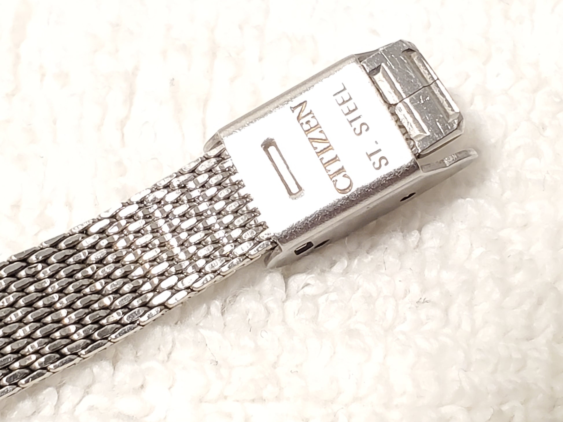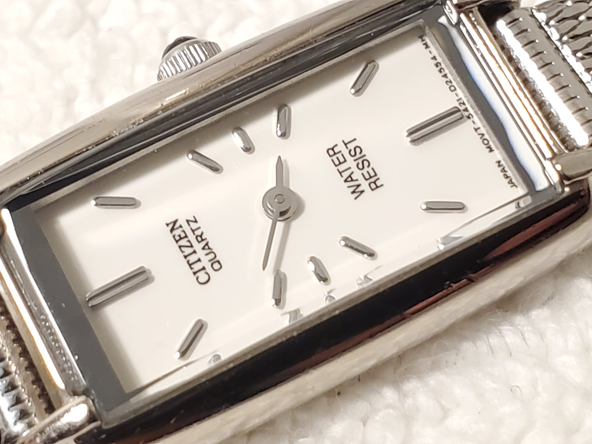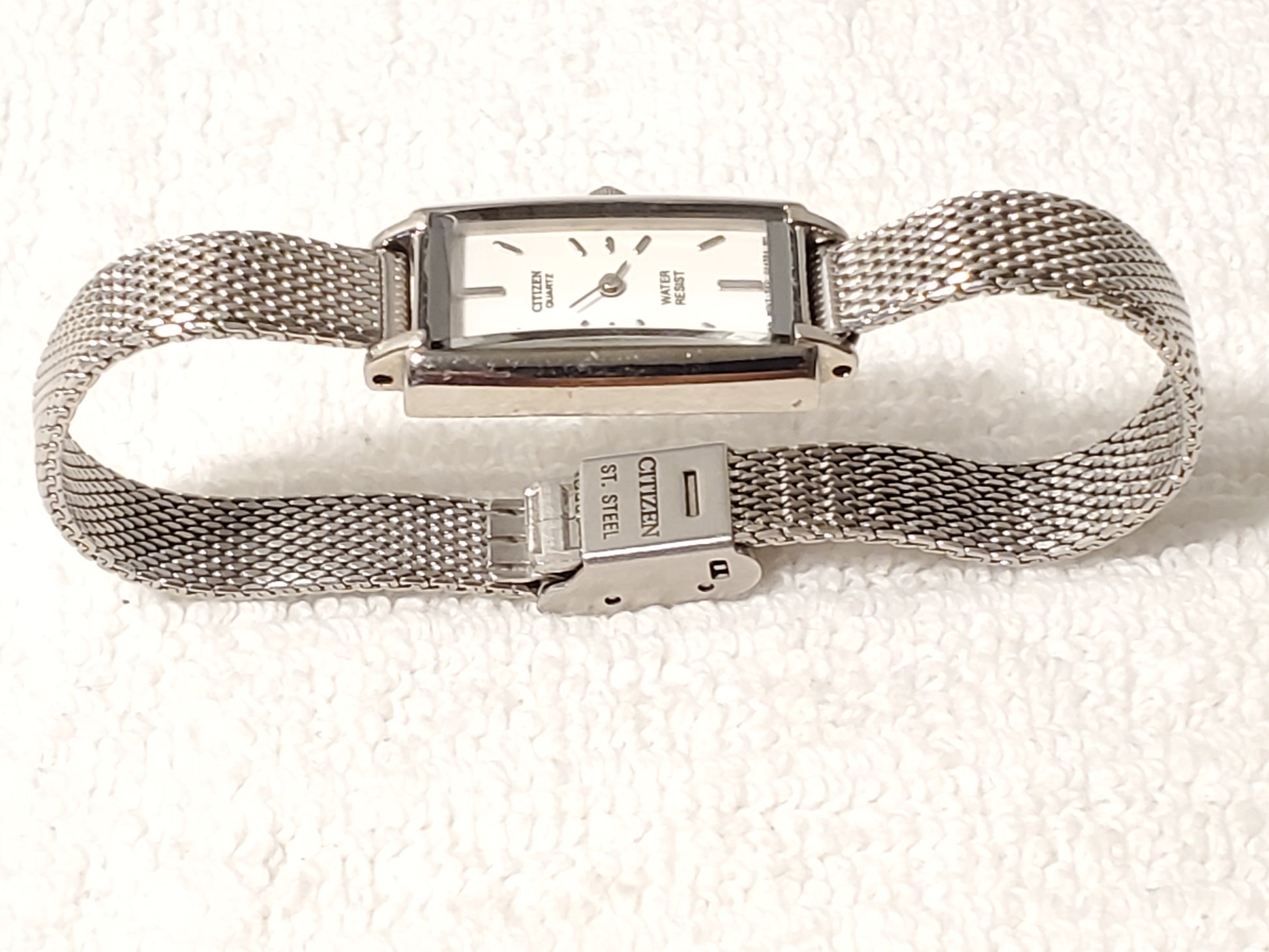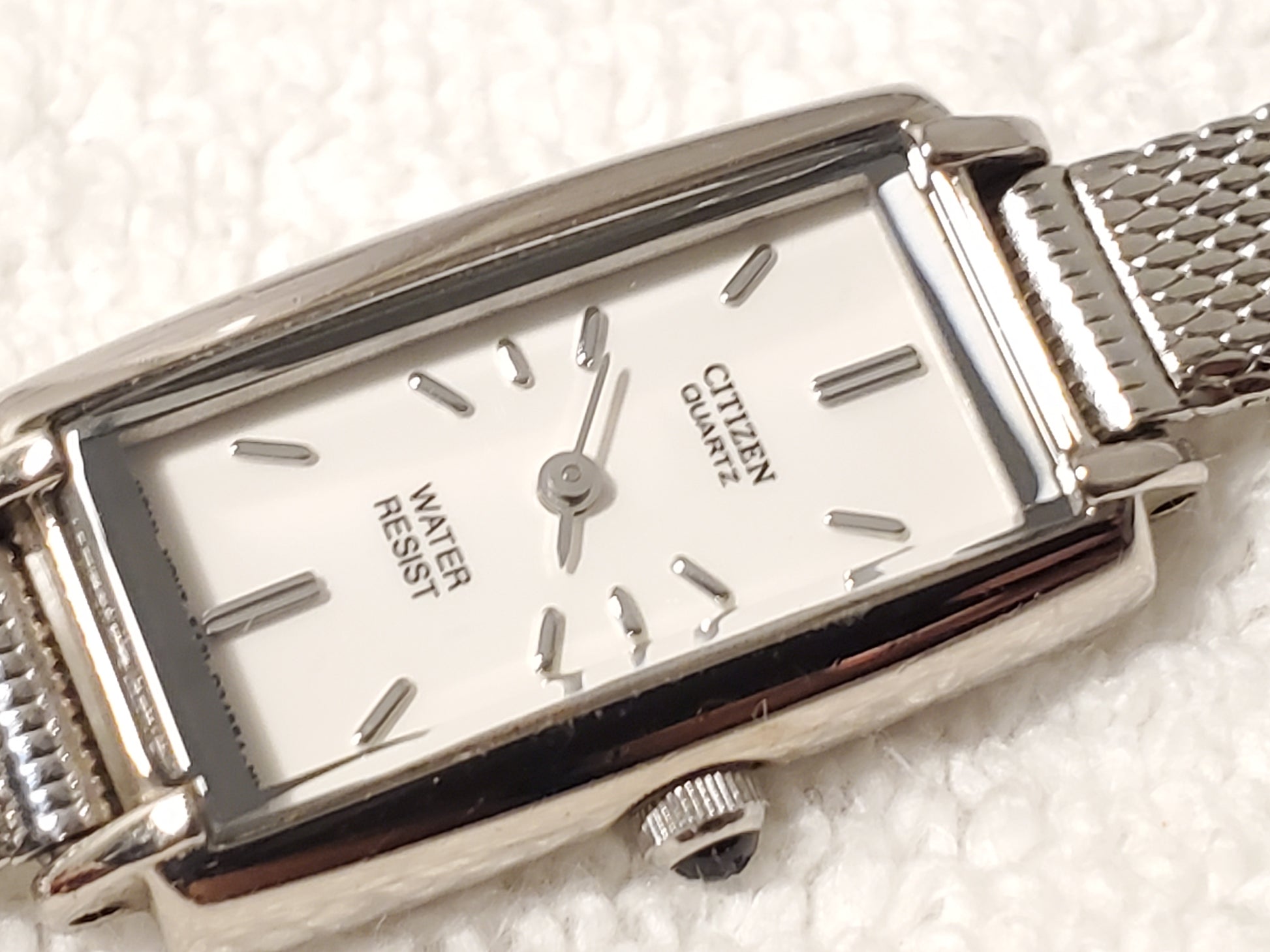 Vintage Citizen Women's Tank Stainless Steel Watch White Dial Mesh Band Onyx Tip