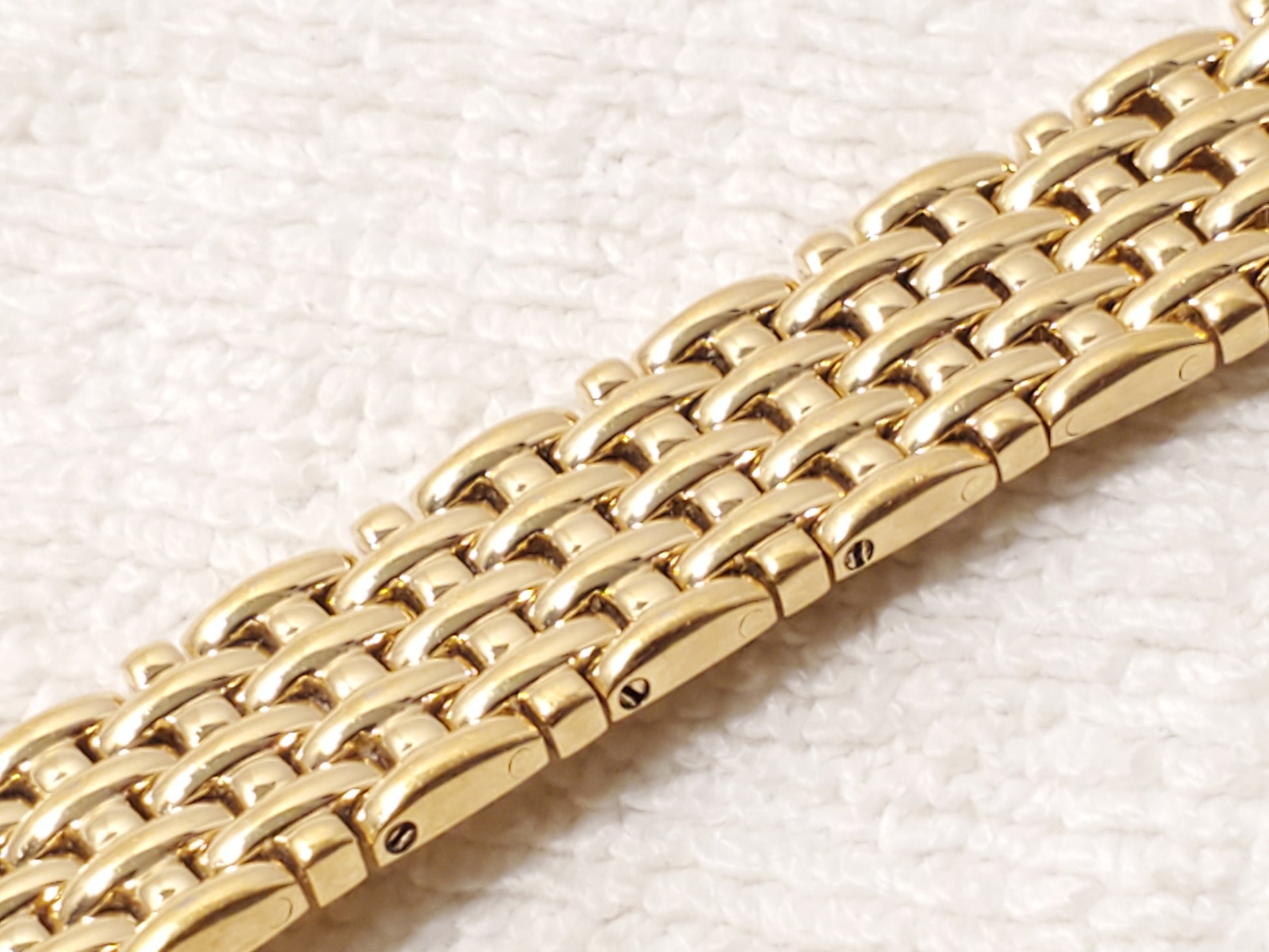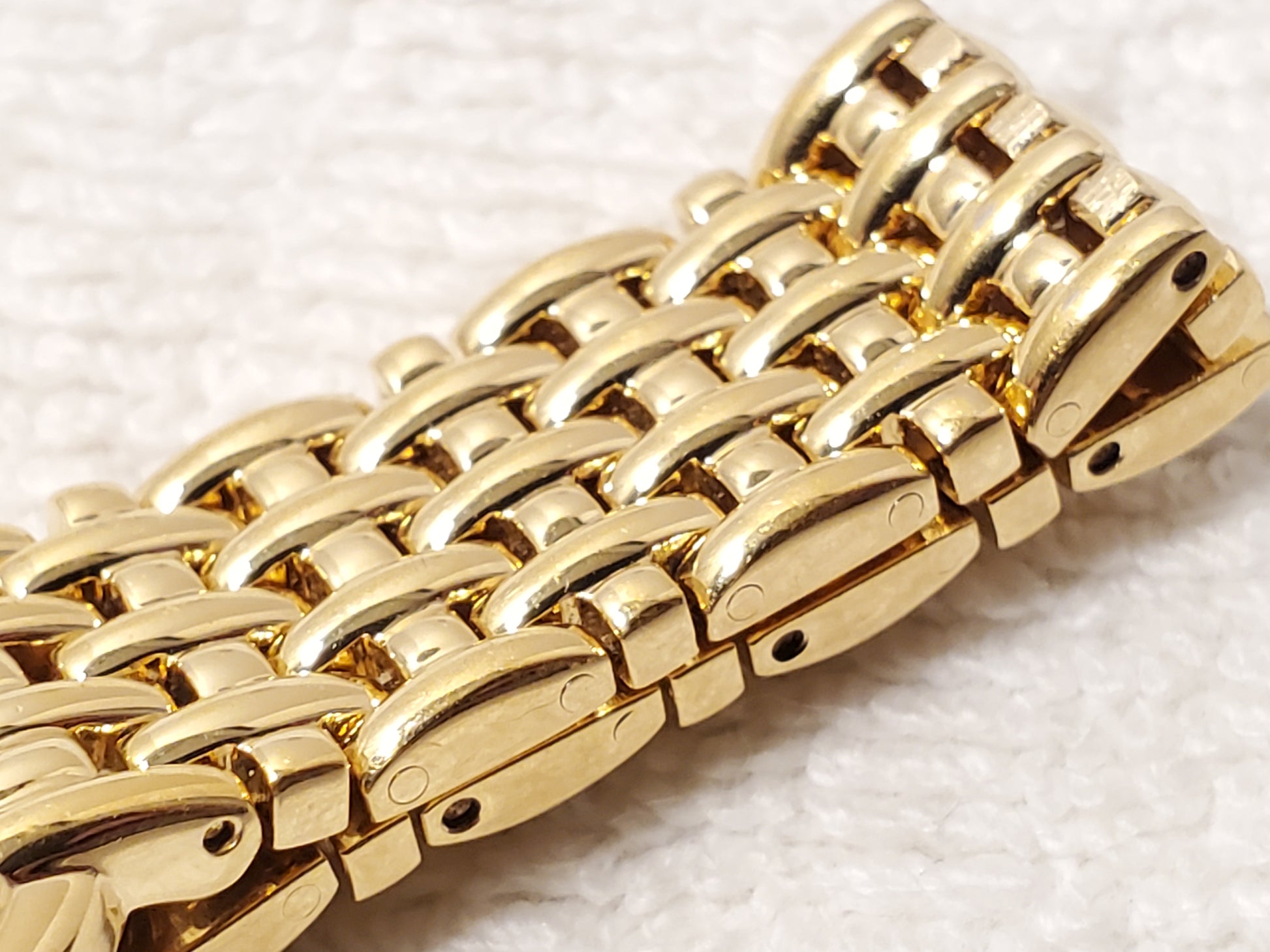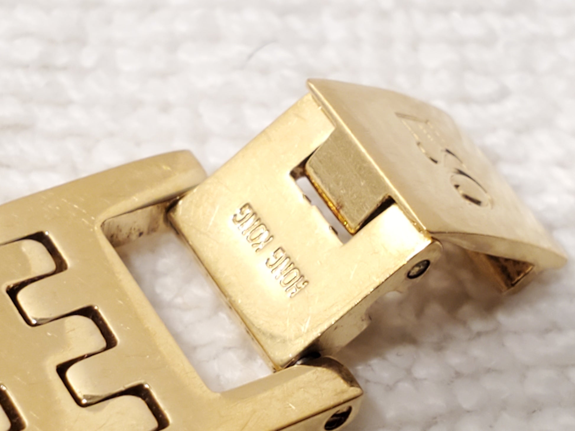 NO SCRATCHES OR SCUFFS ON MINERAL CRYSTAL GLASS WINDOW. May see ghost to lite scratches on back plate, bracelet, clasp all minor. New ENERGIZER battery installed AUGUST 2025, tested, inspected, and witnessed, everything works, fully functional as manufactured, smoke and pet free, CLEAN, DETAILED, POLISHED, BRIGHT, SHINY, ready to wear. Wrist fit comfortable 7". Max 7 1/4" tight fit can adjust to fit a smaller size. Photos may be brighter than the original color. Case size 24m, thickness 7m, gold dial with diamonds, gold plated, stainless steel, vintage, removable links, one jewel, water resistance 30 meters, Swiss Made, jewelry clasp, Switzerland.