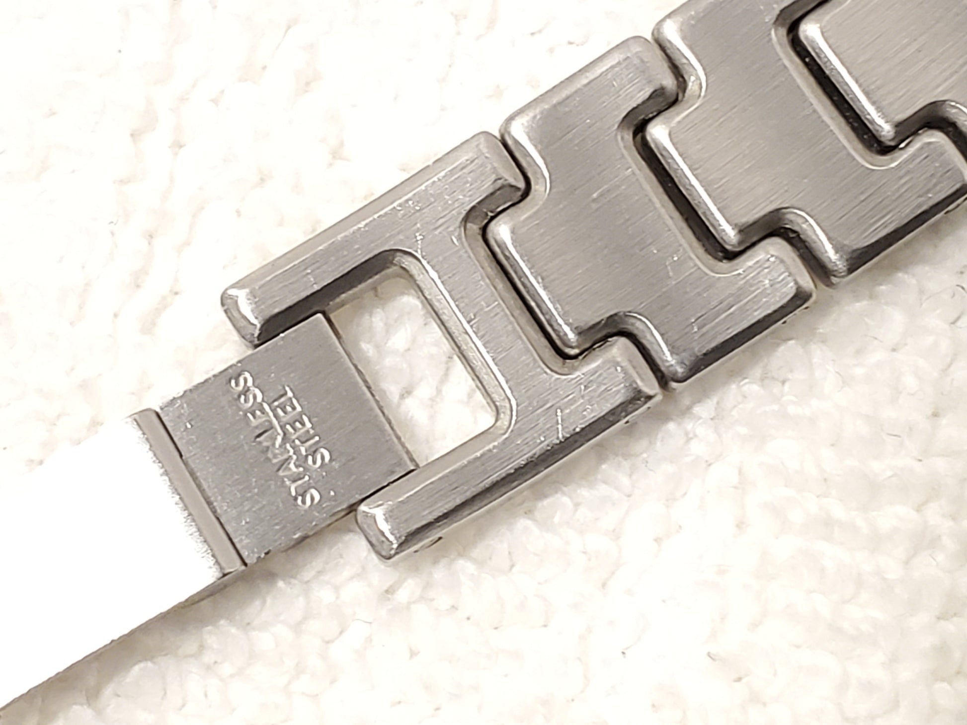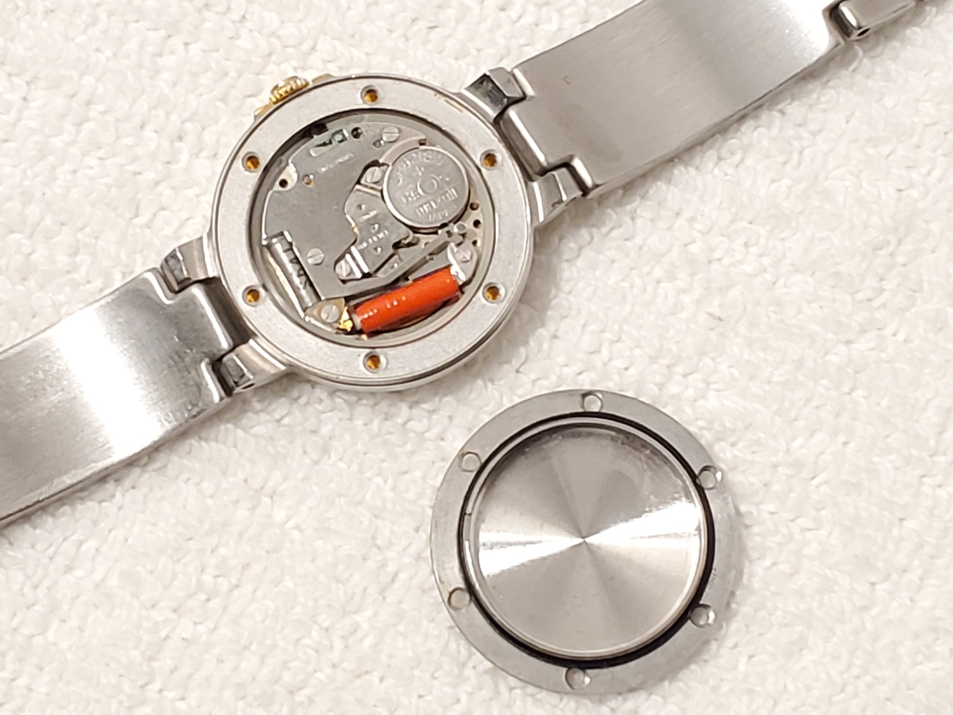 NO SCRATCHES OR SCUFFS ON MINERAL CRYSTAL WINDOW. ONE OWNER. May see ghost to lite scratches on back plate, bracelet, bezel, case, clasp all minor. Lite fading on gold tone trim. New MAXELL battery installed SEPTEMBER 2025, tested, inspected, and witnessed, everything works, fully functional as manufactured, smoke and pet free, CLEAN, DETAILED, POLISHED, BRIGHT, SHINY, ready to wear. Wrist fit comfortable 5 3/4". Max 6" tight fit can adjust to fit a smaller size. Photos may be brighter than the original color. Case size 25m, thickness 6m, black dial, date indicator, gold plated roman numerals, roman numerals smooth bezel, Ferrari logo on bracelet and dial, one jewel, swiss made, removable links, jewelry clasp, stainless steel, crown guard.