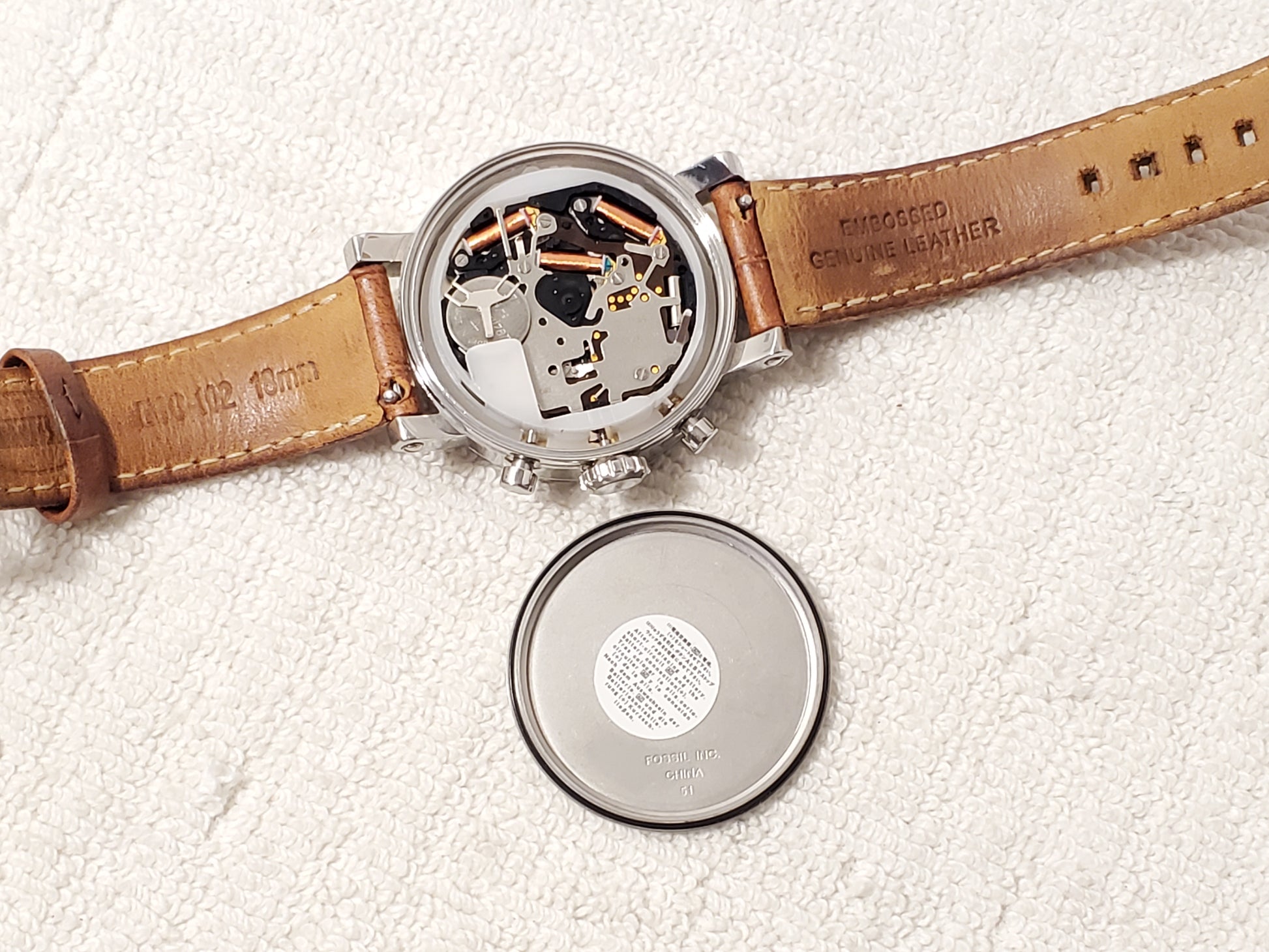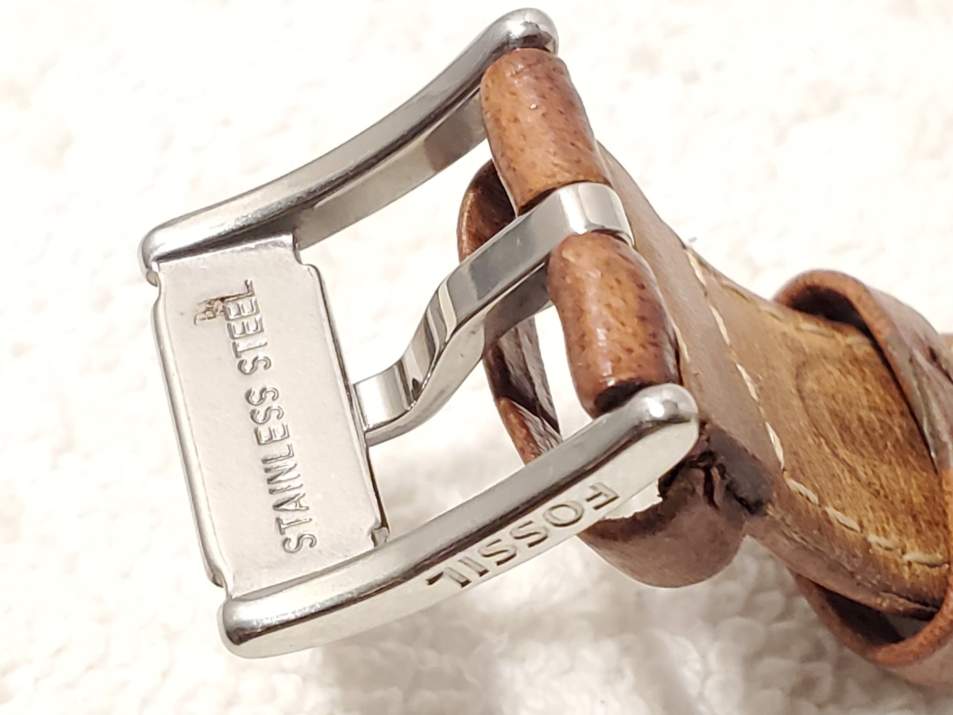 Vintage Fossil Women's Stainless Steel Chronograph Date Watch Brown Leather Band