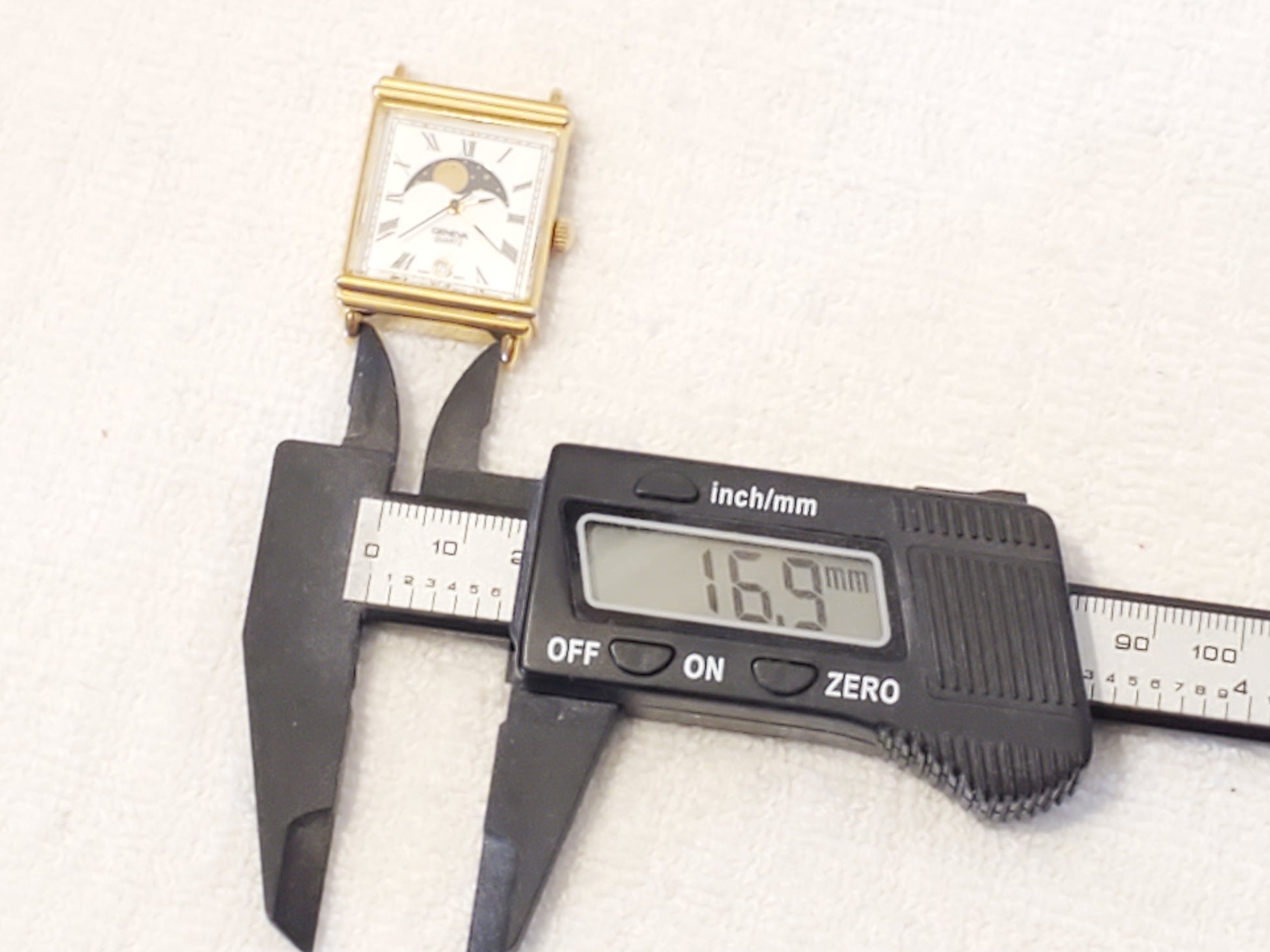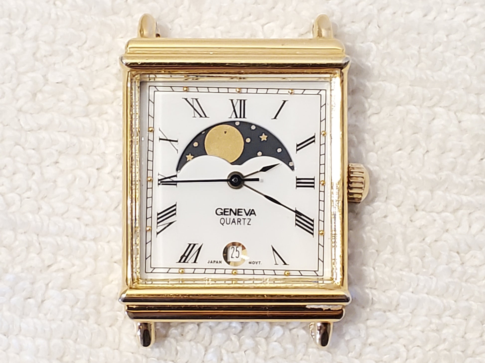 Vintage Geneva Women's Tank Date Moon Phase Quartz Watch Gold Tone One Jewel SS