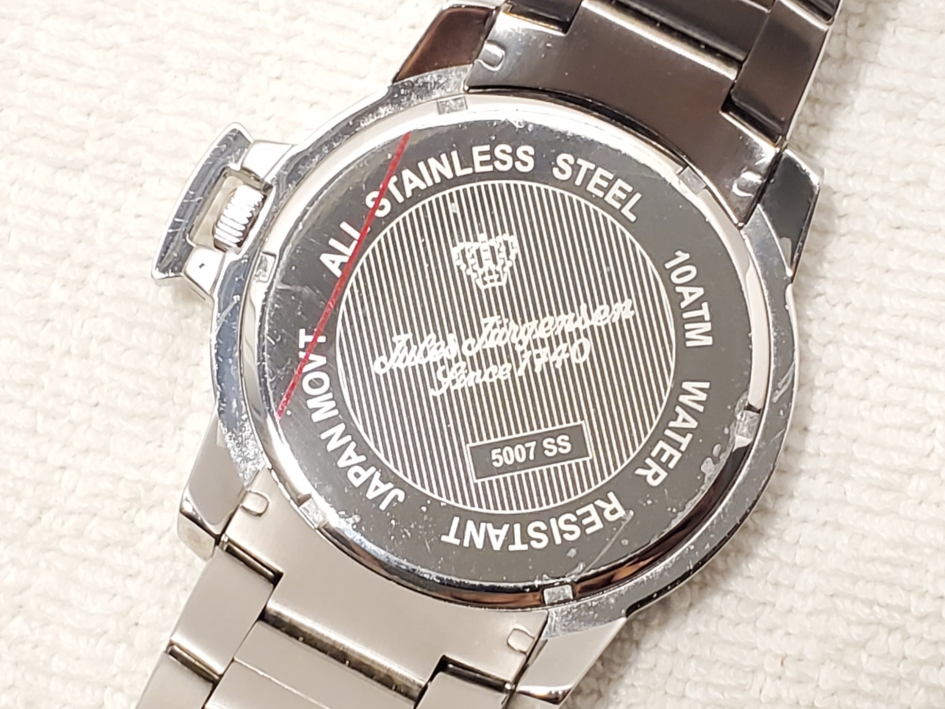 Vintage Jules Jurgensen Men's Blue Dial Day Date Stainless Steel Quartz Watch