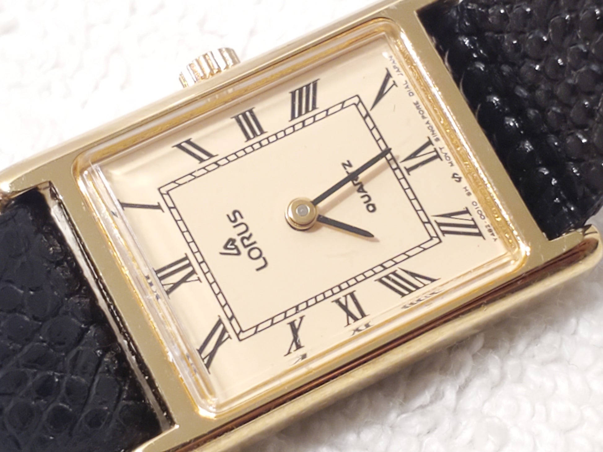 Vintage Lorus by Seiko Women's Tank Gold Tone Watch Two Jewels Roman Numerals SS