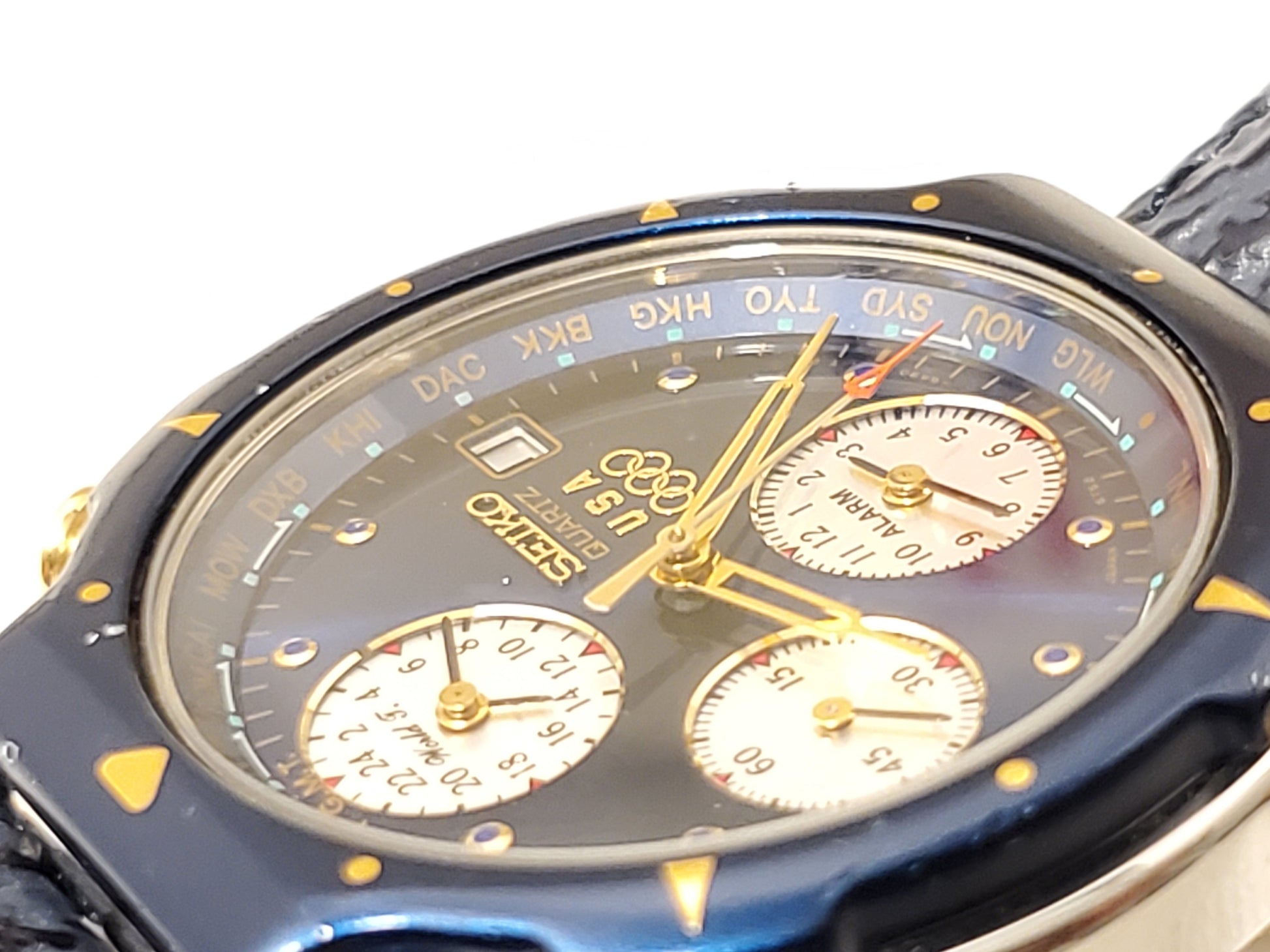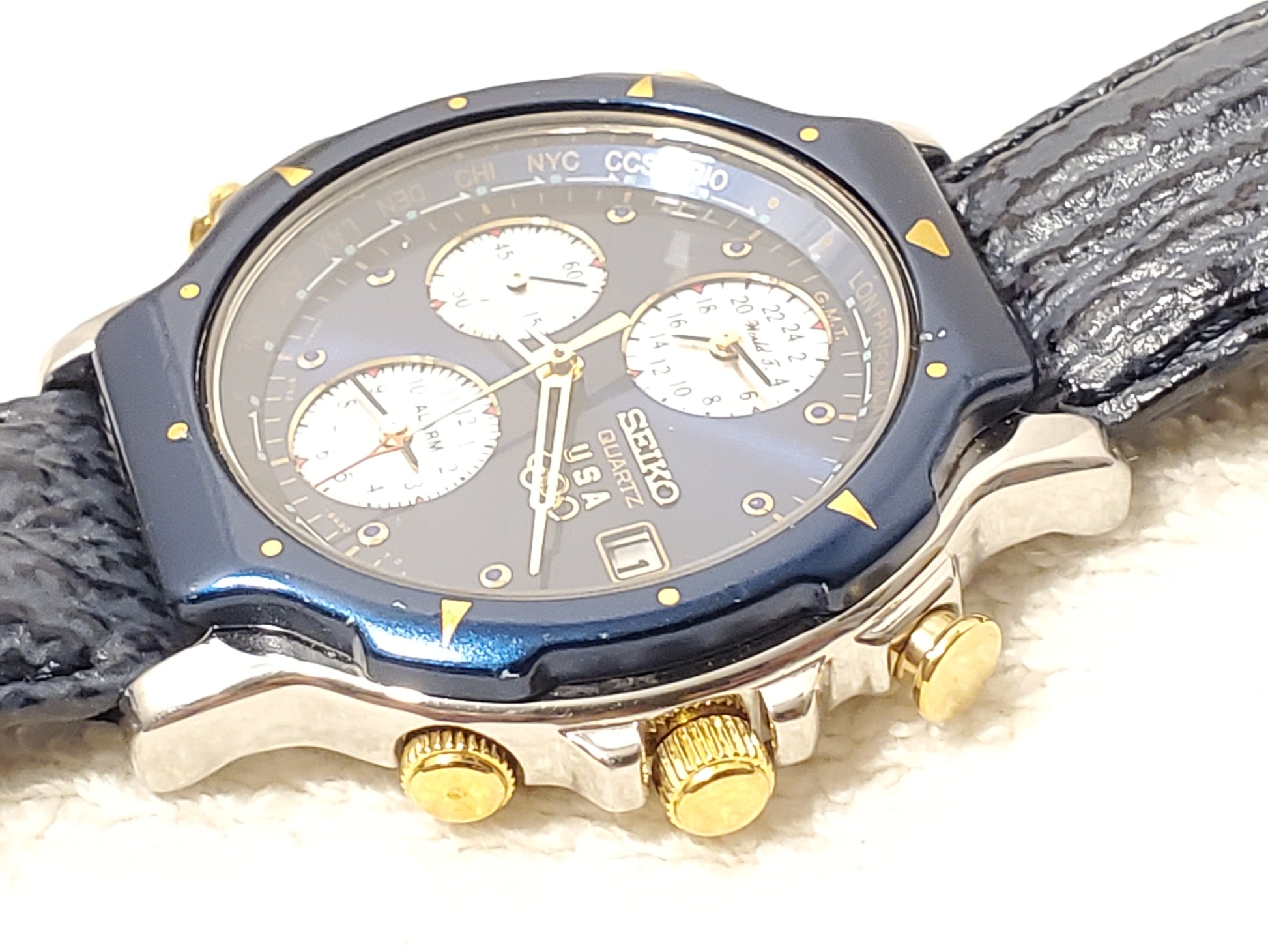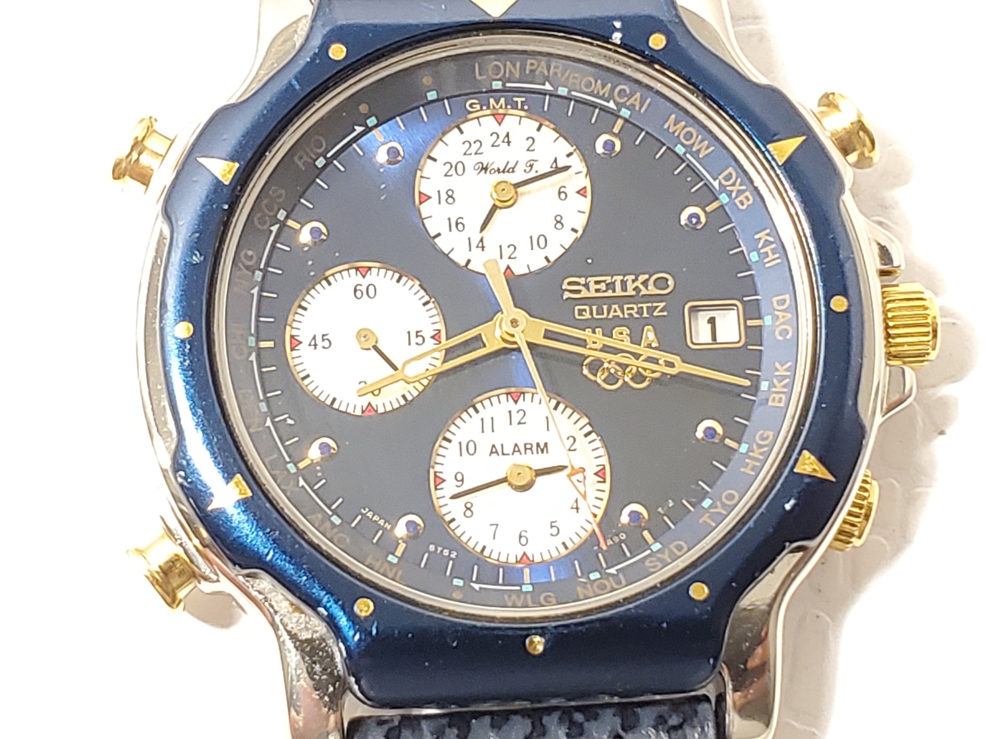 Vintage Seiko 1992 USA Olymipic Team World Time Alarm Date Blue Men's Watch SS
