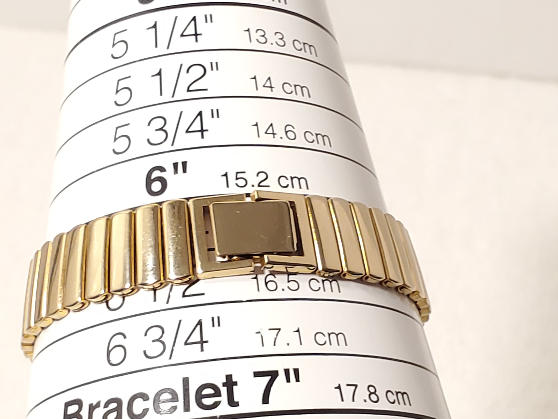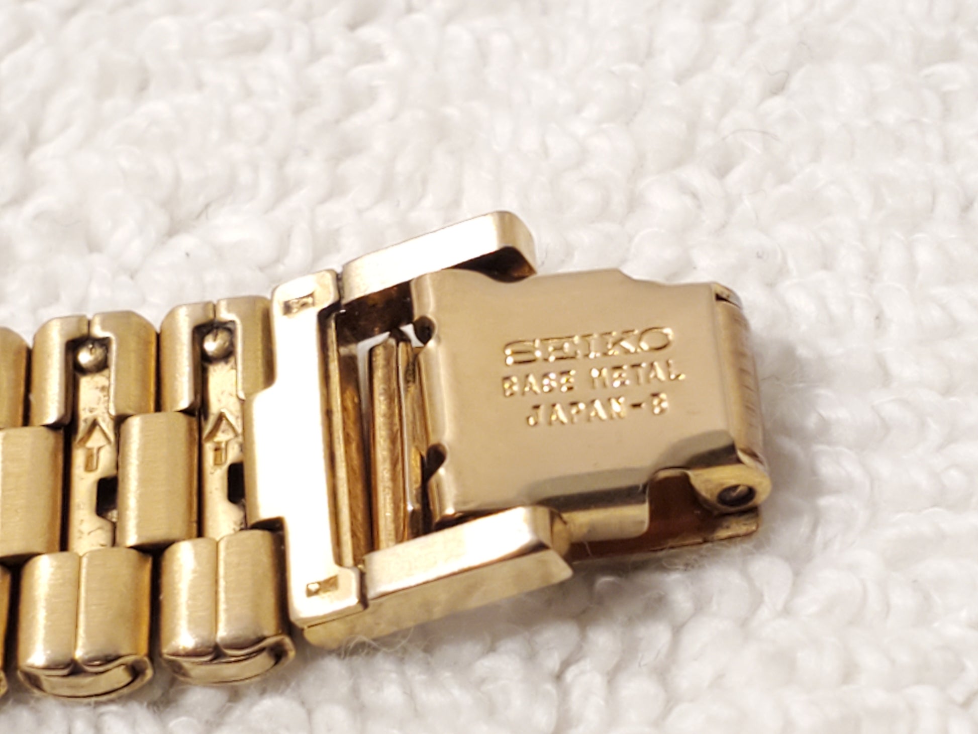 Two minor tiny to small ghost to light scratches on mineral crystal glass window nothing major barely can see. May see ghost to lite scratches on bracelet and clasp all minor. No fading. New ENERGIZER battery installed AUGUST 2025, tested, inspected, and witnessed, everything works, fully functional as manufactured, smoke and pet free, CLEAN, DETAILED, POLISHED, BRIGHT, SHINY, ready to wear. Wrist fit comfortable 6". Max 6 1/4" tight fit can adjust to fit a smaller size. Photos may be brighter than the original color. Case size 13m, thickness 5m, blue dial, tank style case, stainless steel, base metal, gold tone, jewelry clasp, vintage 1980's, removable links.
