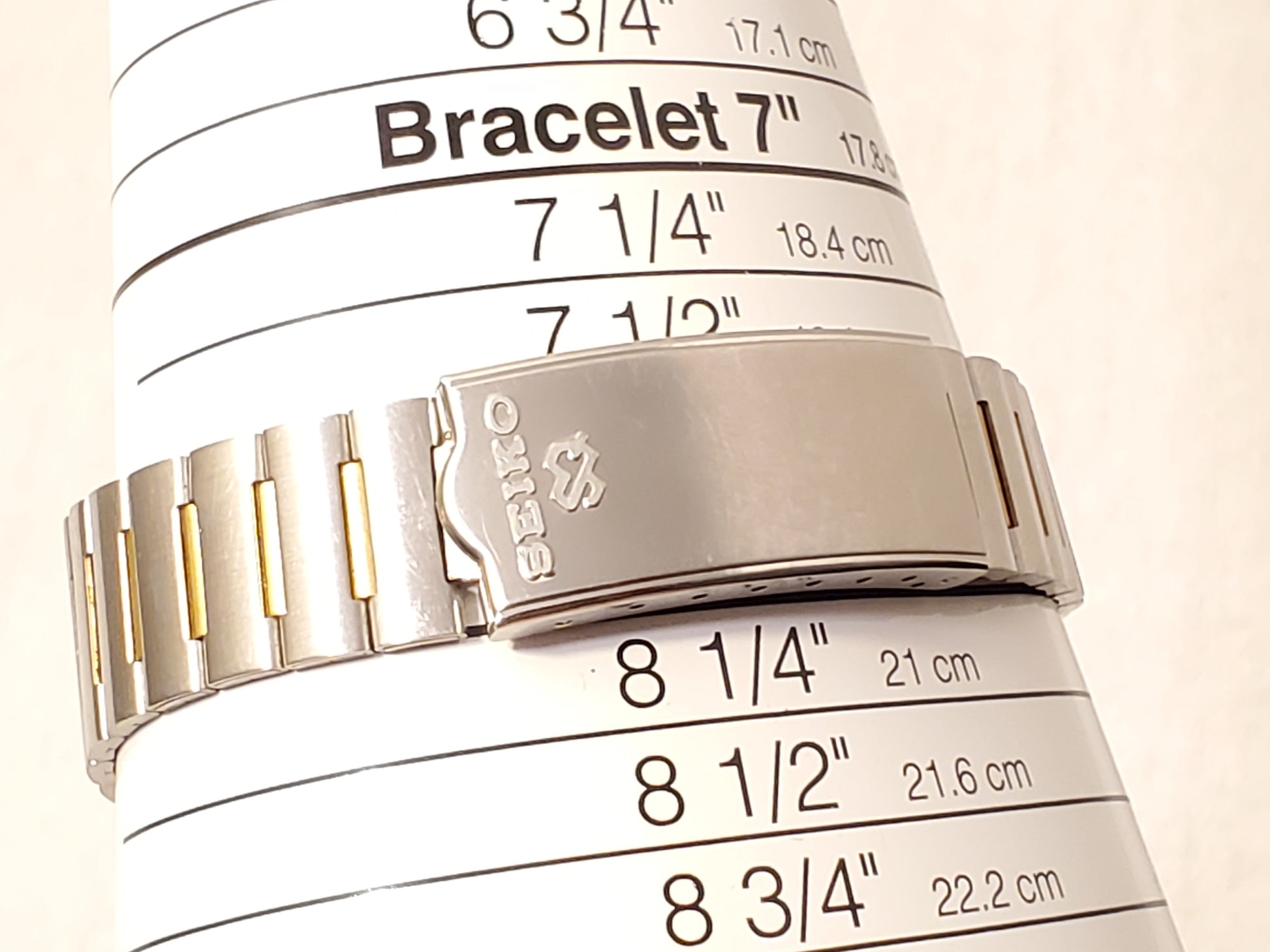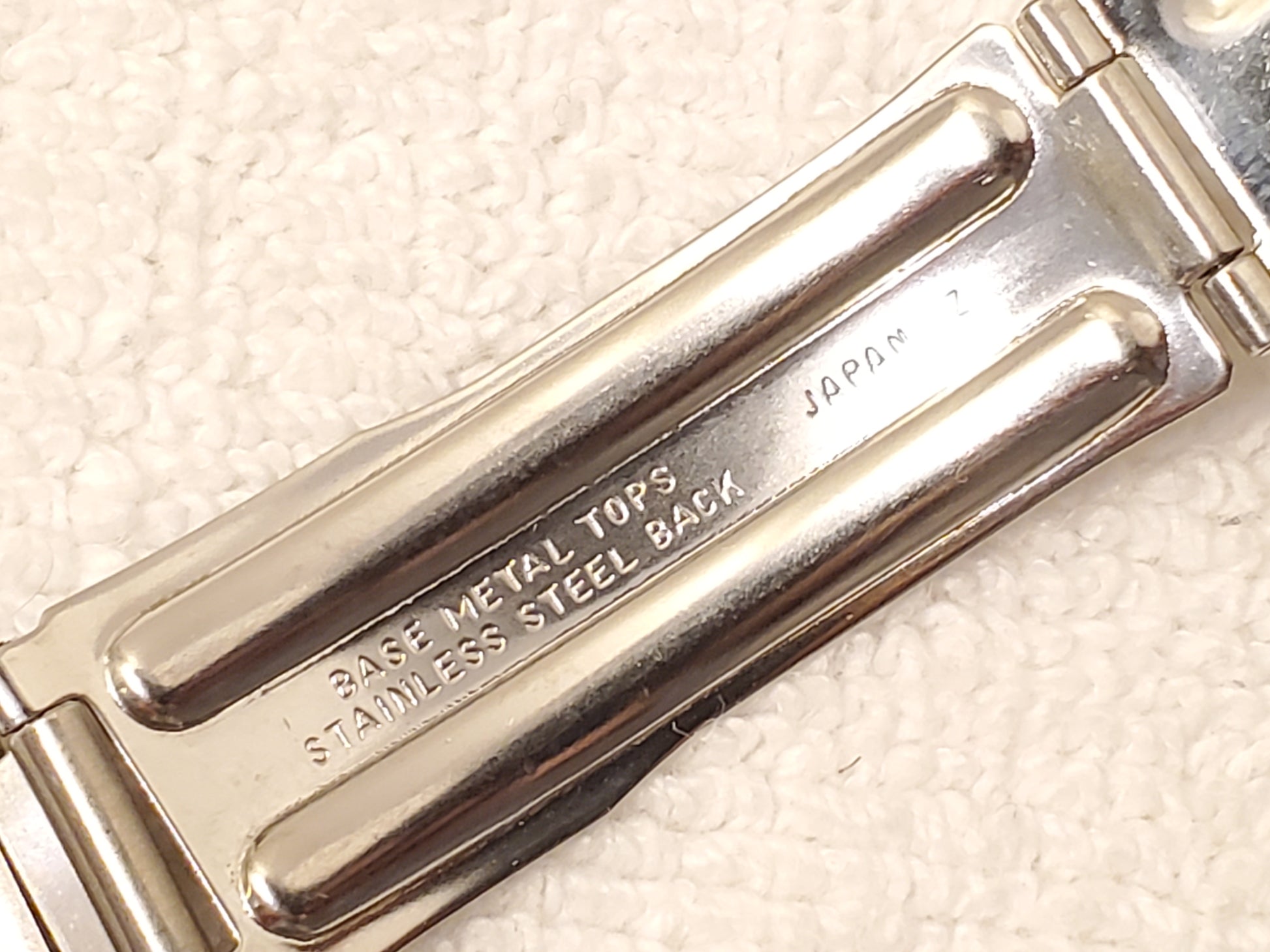 NO SCRATCHES OR SCUFFS ON THICK MINERAL CRYSTAL GLASS WINDOW. ONE OWNER. May see ghost to lite scratches on back plate, bracelet, clasp all minor. New ENERGIZER battery installed SEPTEMBER 2025, tested, inspected, and witnessed, everything works, fully functional as manufactured, smoke and pet free, CLEAN, DETAILED, POLISHED, BRIGHT, SHINY, ready to wear. Wrist fit comfortable 7 3/4". Max 8" tight fit can adjust to fit a smaller size. Photos may be brighter than the original color. Case size 39m, thickness 11m, white dial, vintage 1980's, chronograph, date indicator, moonphase with golden moon and stars, 15 jewels, stainless steel, lug width 18m, gold plated trim, screwback plate, roman numerals with gold dots on railroad track minute ring, gold central chronograph seconds hand, black hour, minute, and subdial hands, tenth of second at 3, running seconds at 6, 30-minute counter at 9 subdials, removable links, micro adjustments, three push plunge buttons.