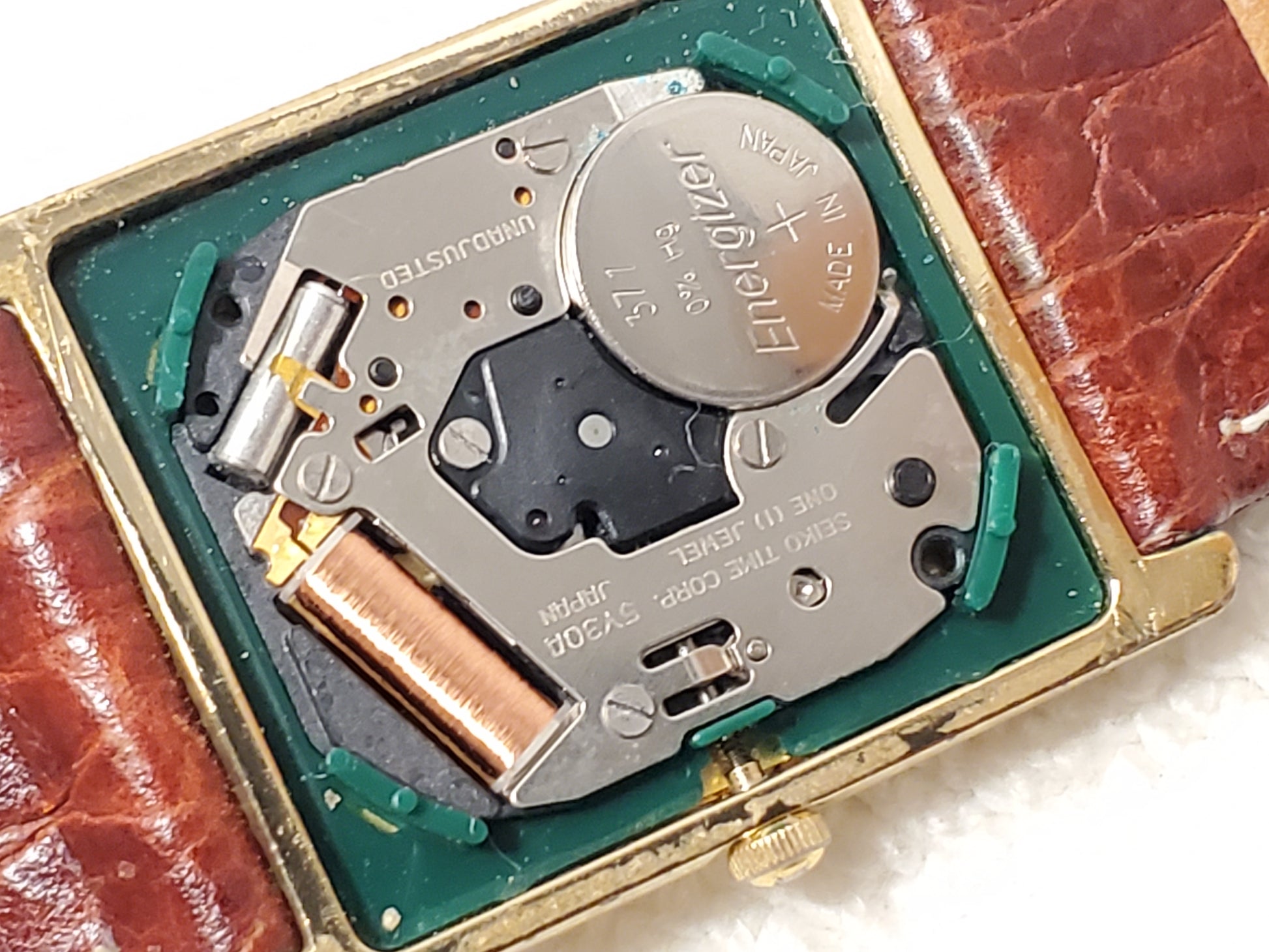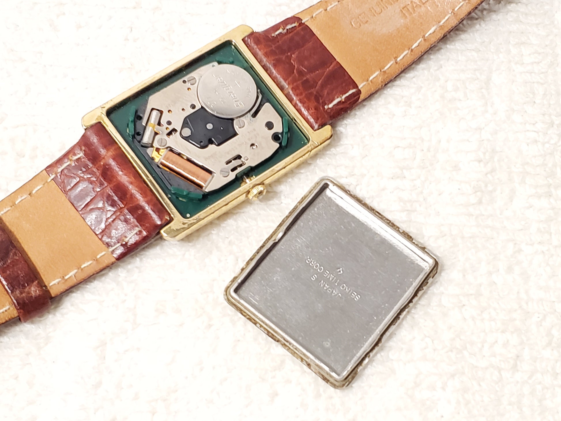 Vintage Seiko Men's Tank Quartz Watch Gold Dial Brown Leather Strap One Jewels