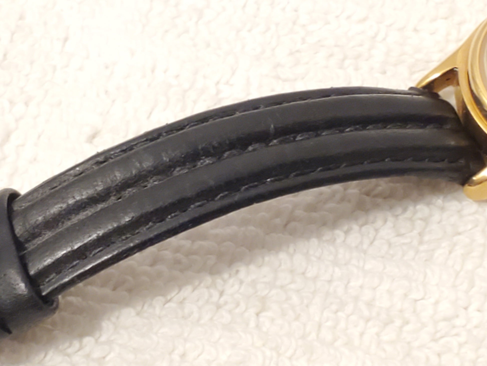 NO SCRATCHES OR SCUFFS ON MINERAL CRYSTAL GLASS WINDOW. ONE OWNER. GENTLY USED. VERY GOOD CONDITION COSMETICALLY. New ENERGIZER battery installed JULY 2025, tested, inspected, and witnessed, everything works, fully functional as manufactured, smoke and pet free, CLEAN, DETAILED, POLISHED, BRIGHT, SHINY, ready to wear. Wrist fit up to 6 1/2" max tight fit can adjust to fit a smaller size. Photos may be brighter than the original color. Case size 25m, thickness 8m, day date indicator, luminous dial, stainless steel, gold plated, vintage 1990's, screwback plate, black leather strap, water resistance 30 meters, Mickey Mouse Disney Collectible for watch enthusiasts, nice luminous dial for night time appearance.