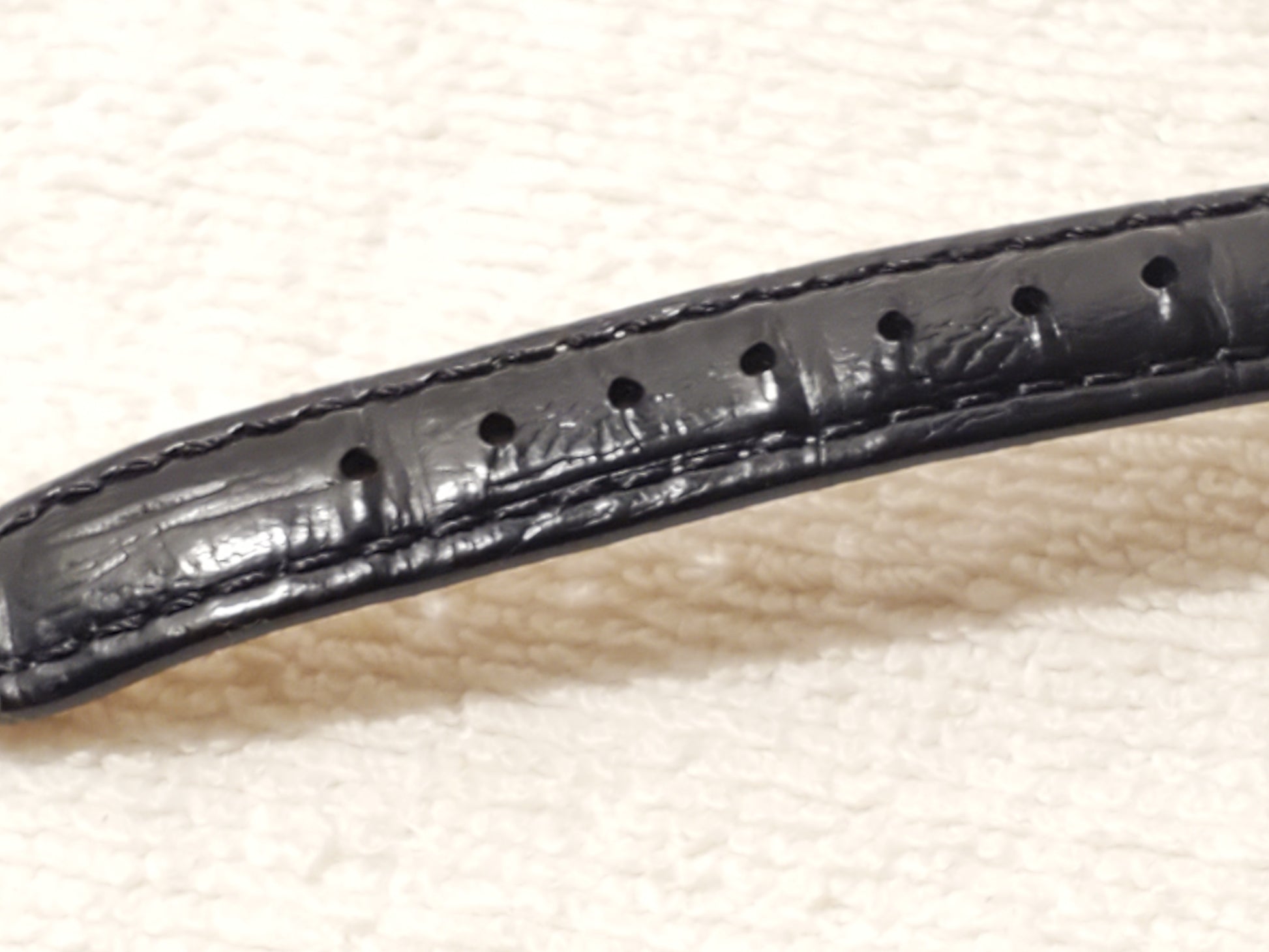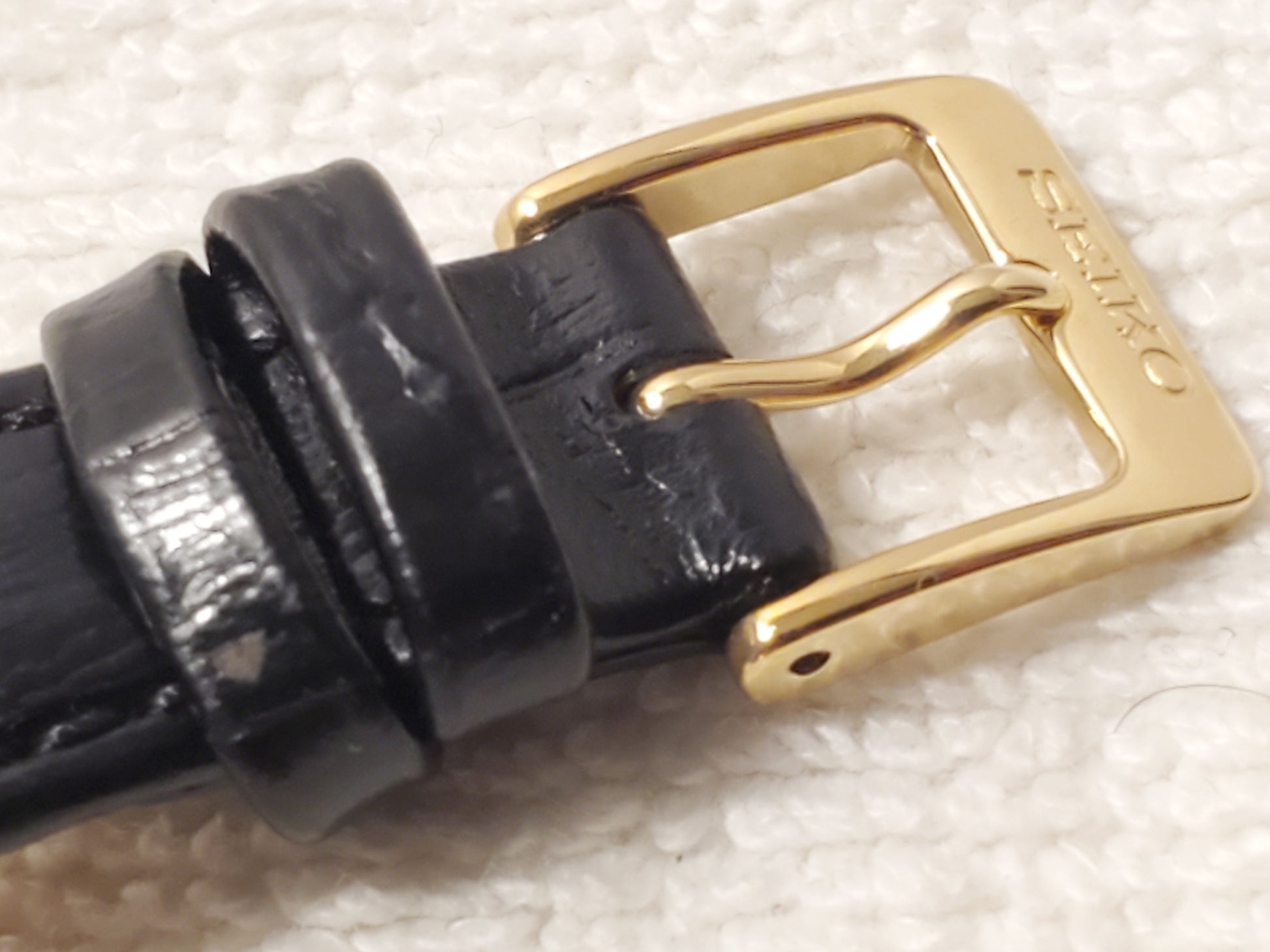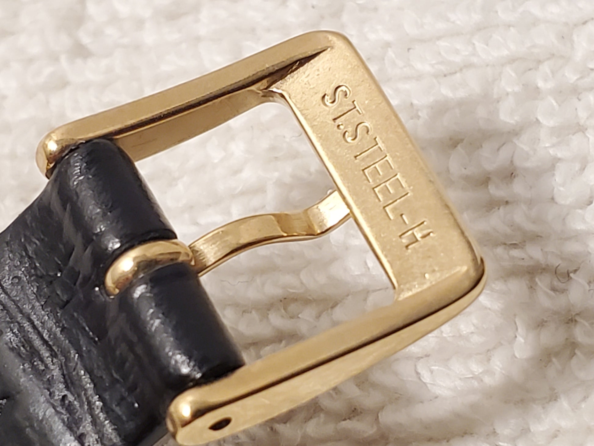 NO SCRATCHES OR SCUFFS ON MINERAL CRYSTAL GLASS WINDOW. ONE OWNER. GENTLY USED. VERY GOOD CONDITION COSMETICALLY. May see ghost to lite scratches on back plate all minor. CHARGED IN SUNLIGHT AUGUST 2025, tested, inspected, and witnessed, everything works, fully functional as manufactured, smoke and pet free, CLEAN, DETAILED, POLISHED, BRIGHT, SHINY, ready to wear. Wrist fit up to 6" max tight fit can adjust to fit a smaller size. Photos may be brighter than the original color. Case size 18m, thickness 7m, white dial, black roman numerals, gold tone, black onyx tip crown, solar, vintage, water resistance 30 meters, black leather strap, stainless steel.