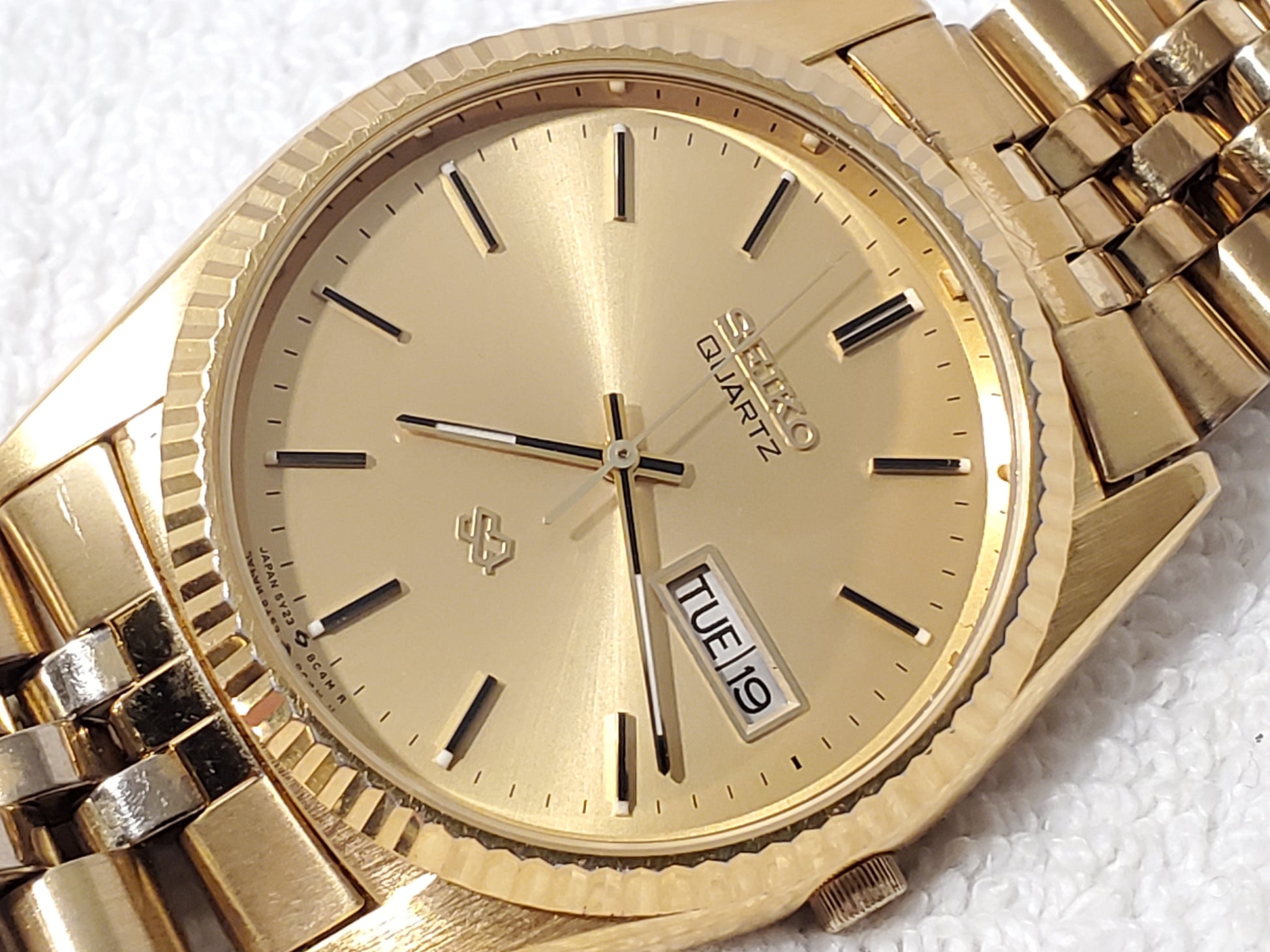 Vintage Seiko SQ Men's Presidential Day Date Gold Tone Watch One Jewel S Steel