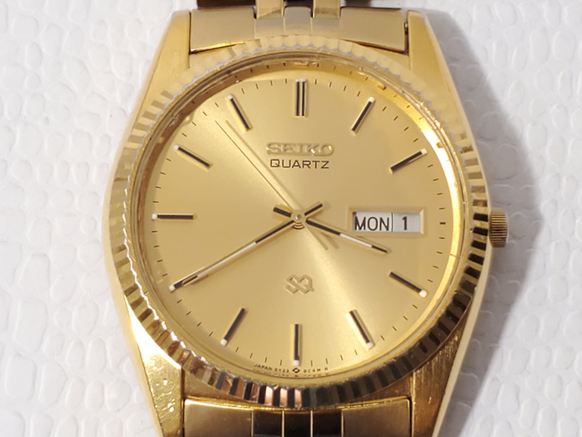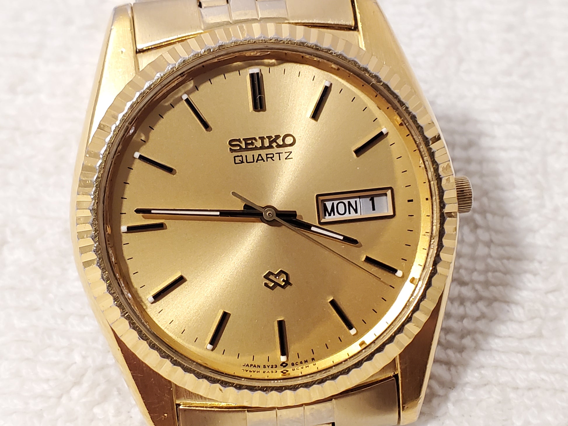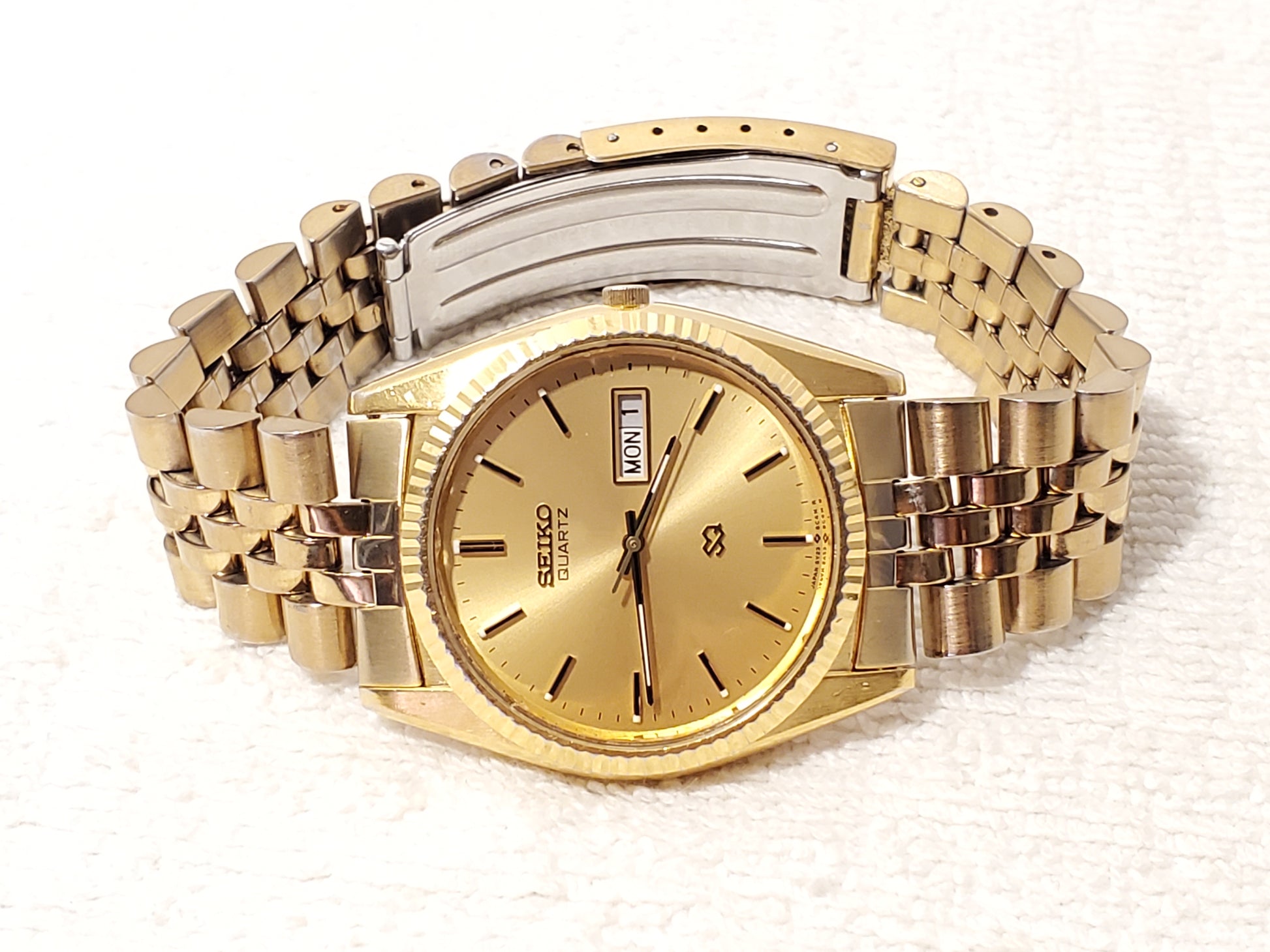 Vintage Seiko SQ Men's Presidential Day Date Gold Tone Watch One Jewel S Steel