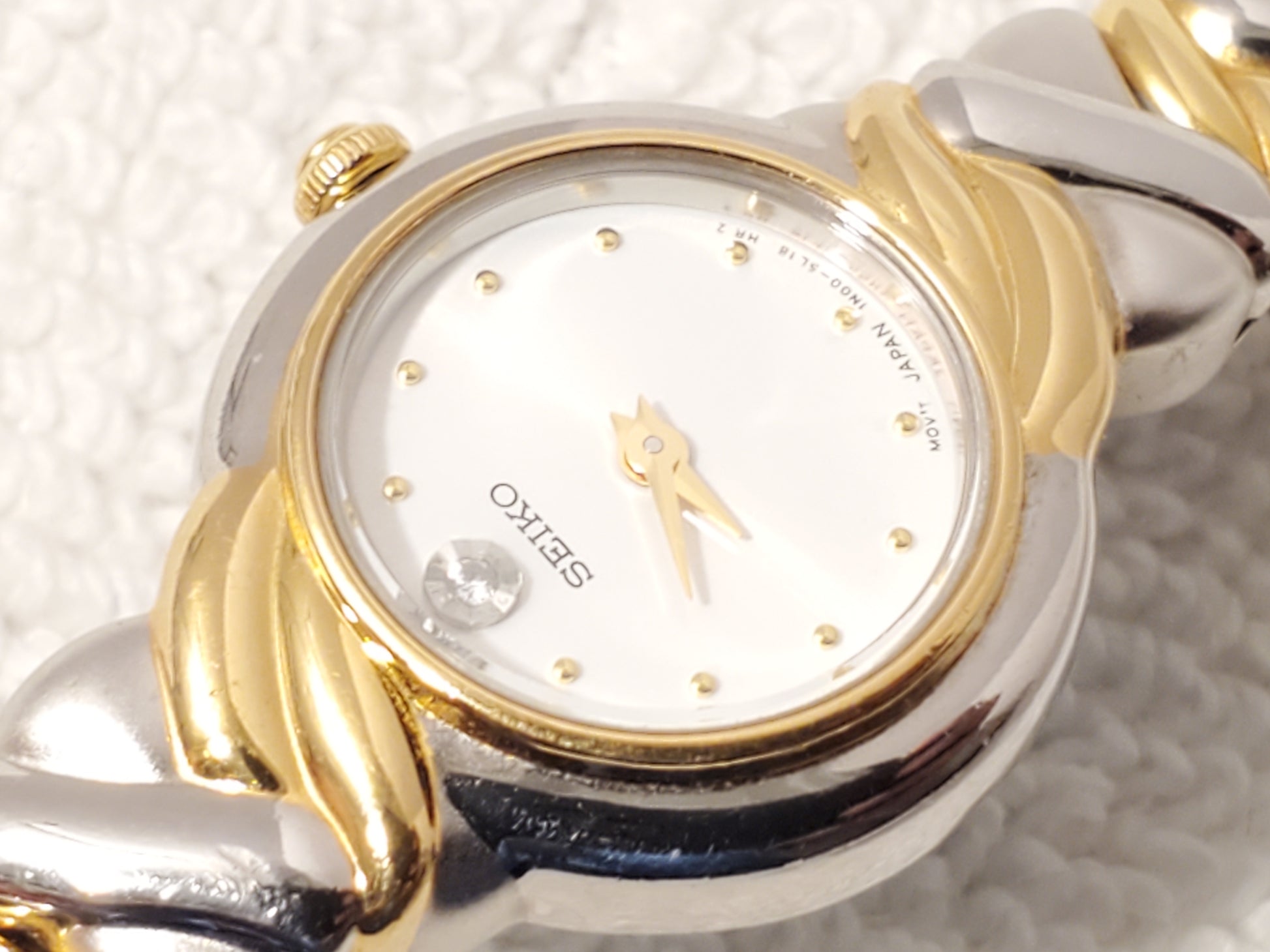 Vintage Seiko Women's Diamond Gold Tone Stainless Steel Watch Silver Dial